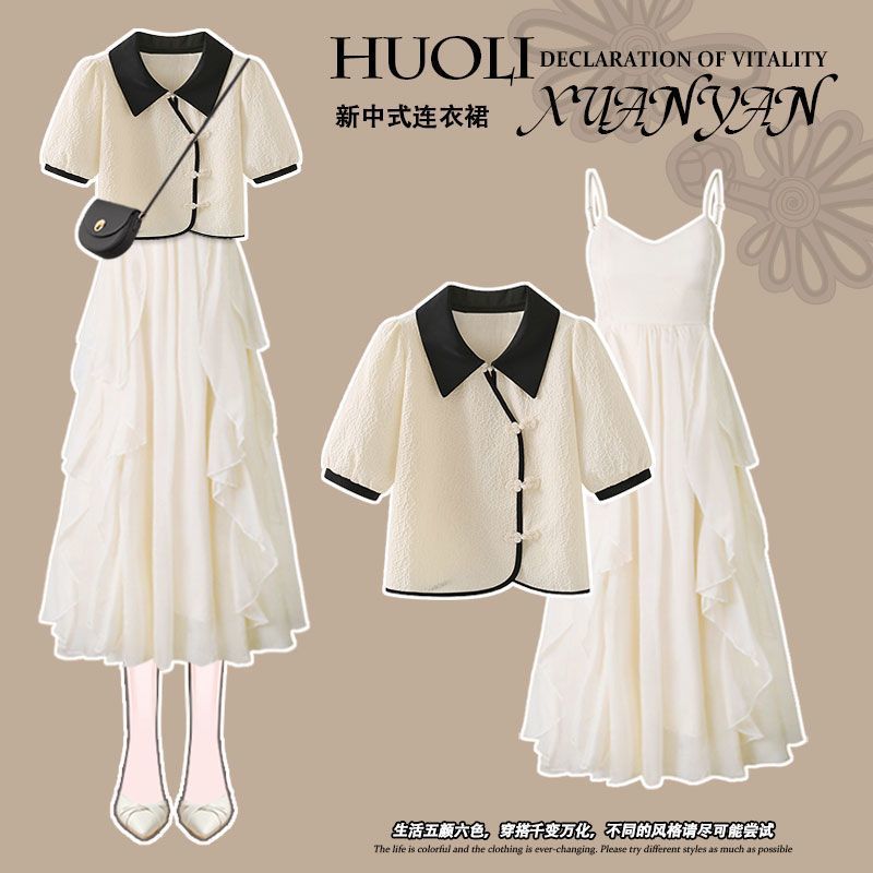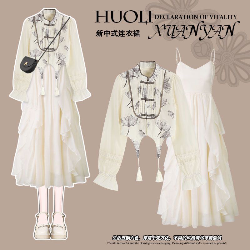 가을 세트 여성의 2023 새로운 하이 엔드 센스 새로운 중국 스타일 국가 스타일 탑 여성 슬리밍 슬링 원피스 투피스 세트