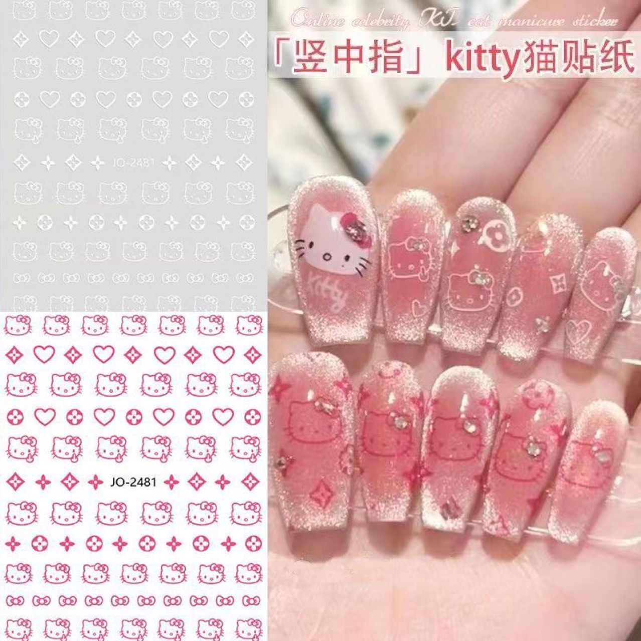 인터넷 유명 인사 폭발성 수직 중간 손가락 만화 재미있는 고양이 핑크 헬로 키티 네일 스티커스토어 가기