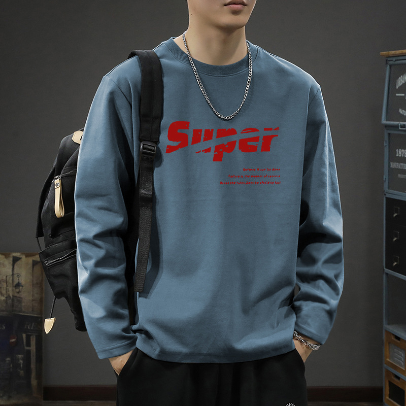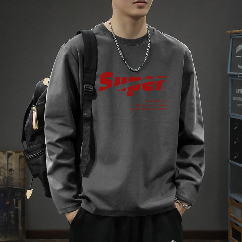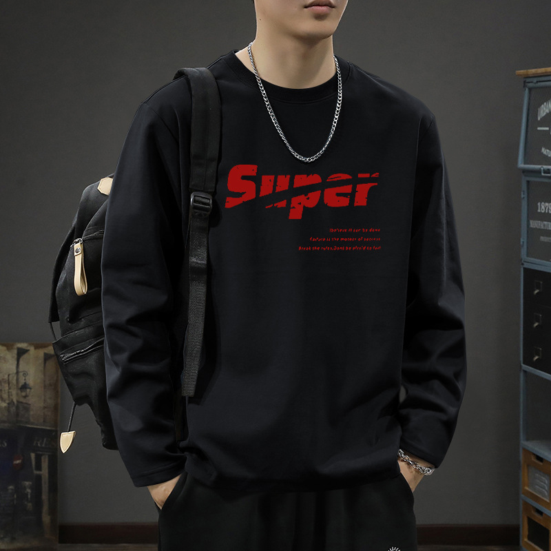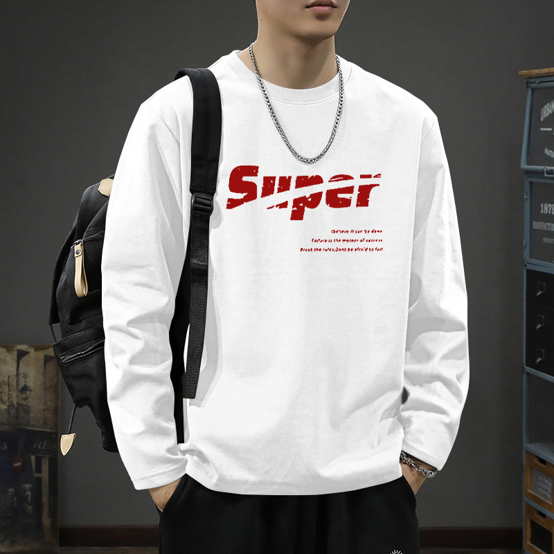 흰색 긴팔 티셔츠 남자의 가을과 겨울 2024 새로운 루즈베이스 셔츠 내부 십대 탑 코튼 티셔츠스토어 가기