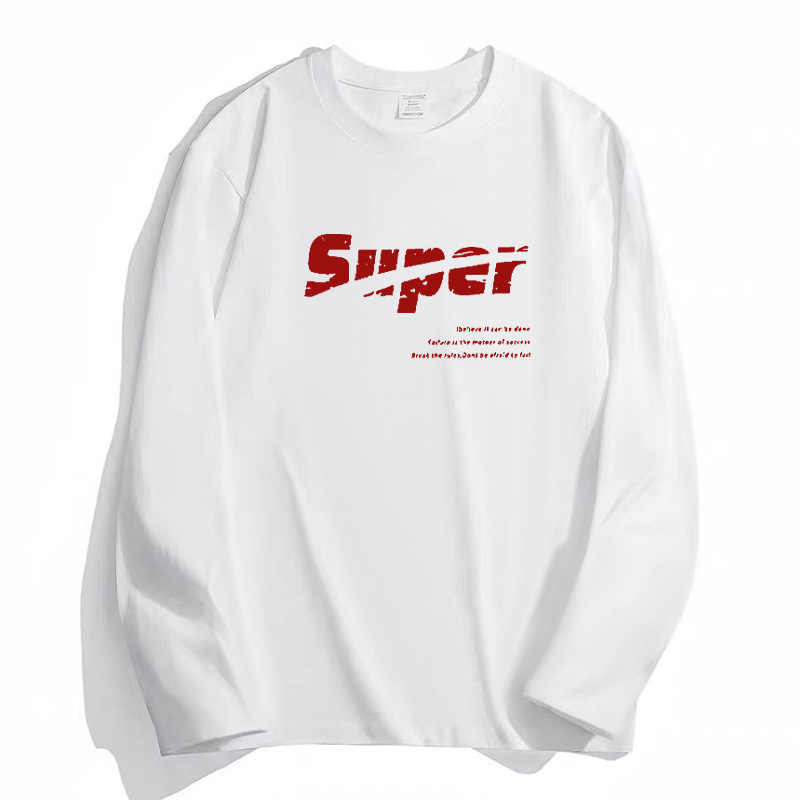 흰색 긴팔 티셔츠 남자의 가을과 겨울 2024 새로운 루즈베이스 셔츠 내부 십대 탑 코튼 티셔츠