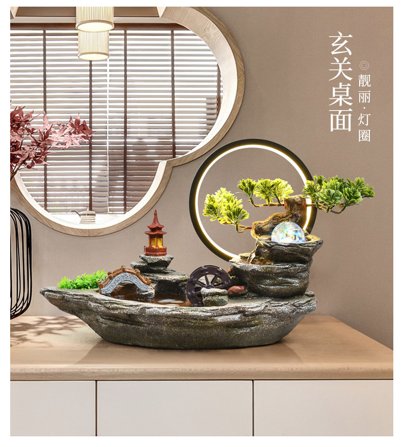 펑수이 휠 로커리 흐르는 물 재산 분수 실내 거실 다실 사무실 데스크탑 풍경 창조적 인 선물 장식품스토어 가기