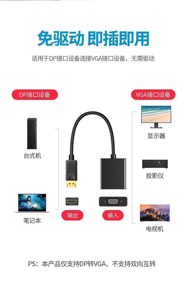 표준 DP-VGA 변환기, DP-VGA 노트북 그래픽 카드 고화질 비디오 변환기 어댑터스토어 가기