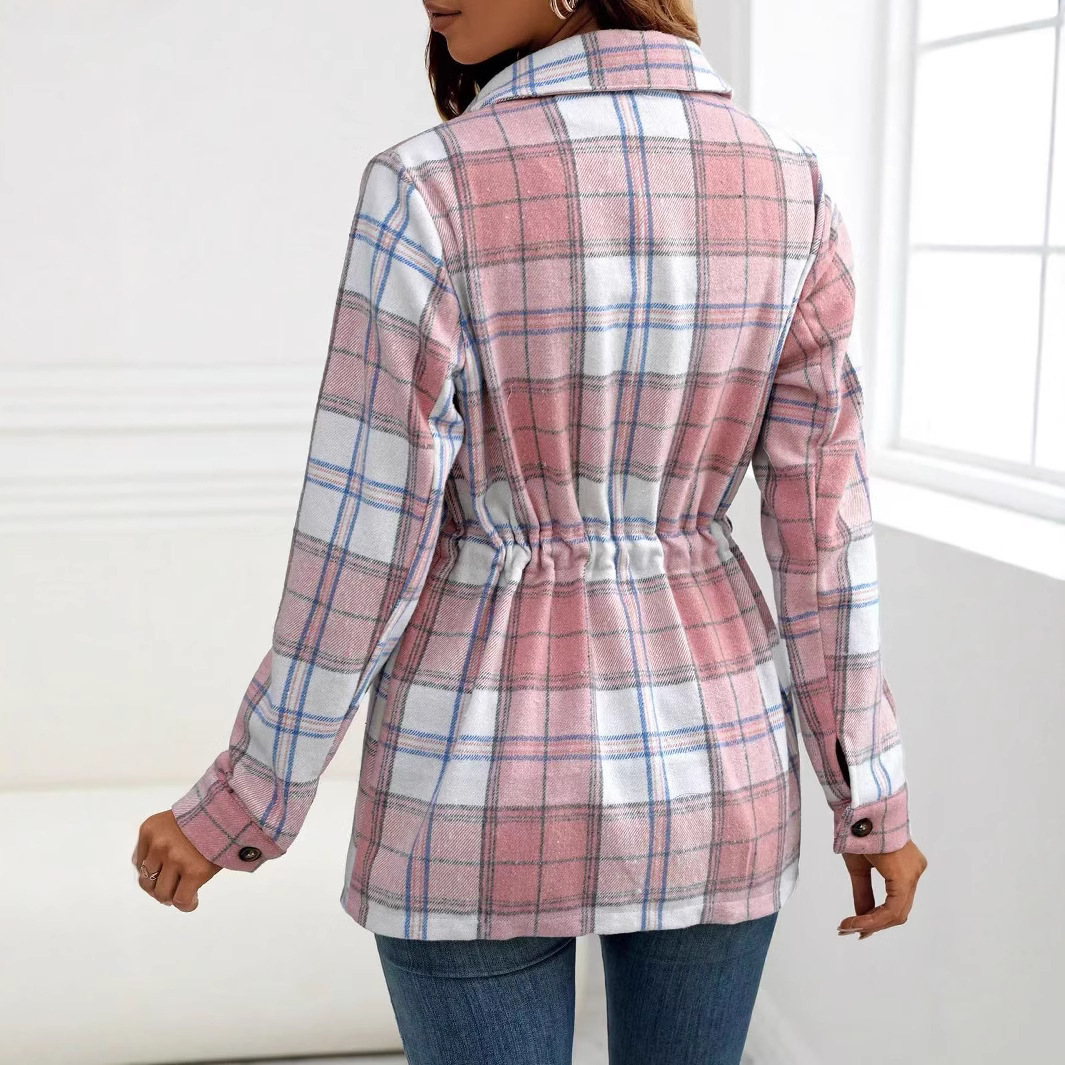 유럽과 미국의 패션 아마존 해외 여성복 긴팔 체크무늬 라펠 셔츠 재킷 패셔너블하고 다재다능하며 나이를 줄여주는 효과