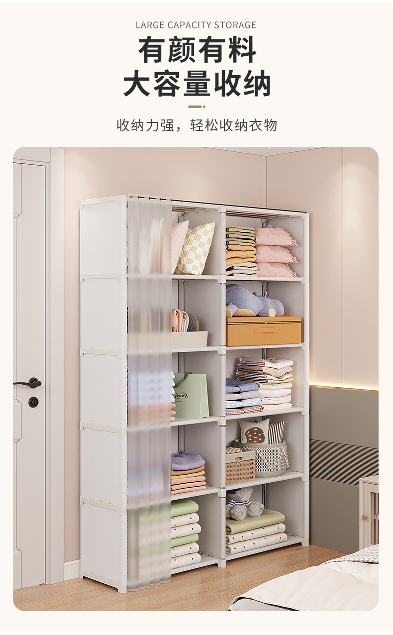 简约家用卧室收纳柜衣柜宿舍储物柜防尘衣服柜出租房简易组装