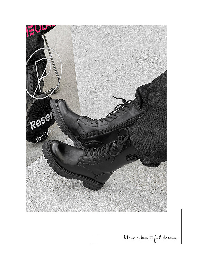 영국 스타일 레트로 툴링 부츠 긴 배럴 두꺼운 밑창 높이 증가 마틴 부츠 겨울 따뜻한 오토바이 라이더 부츠 유행 남성 부츠스토어 가기