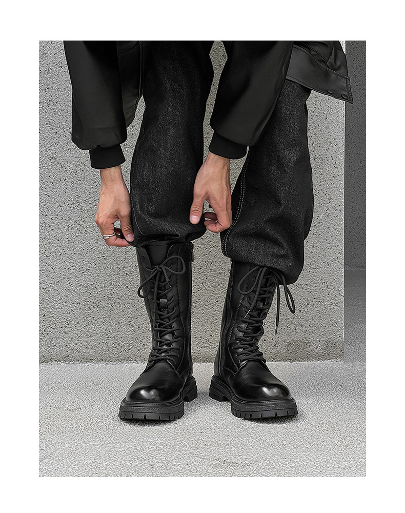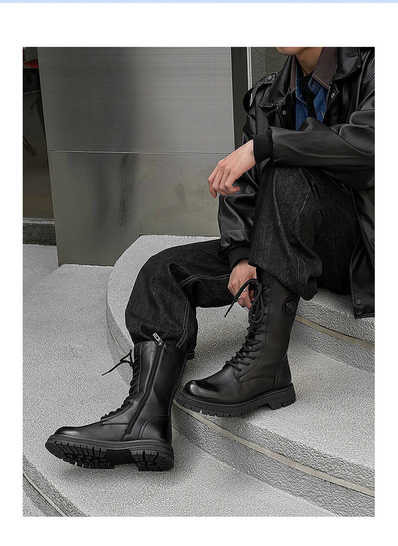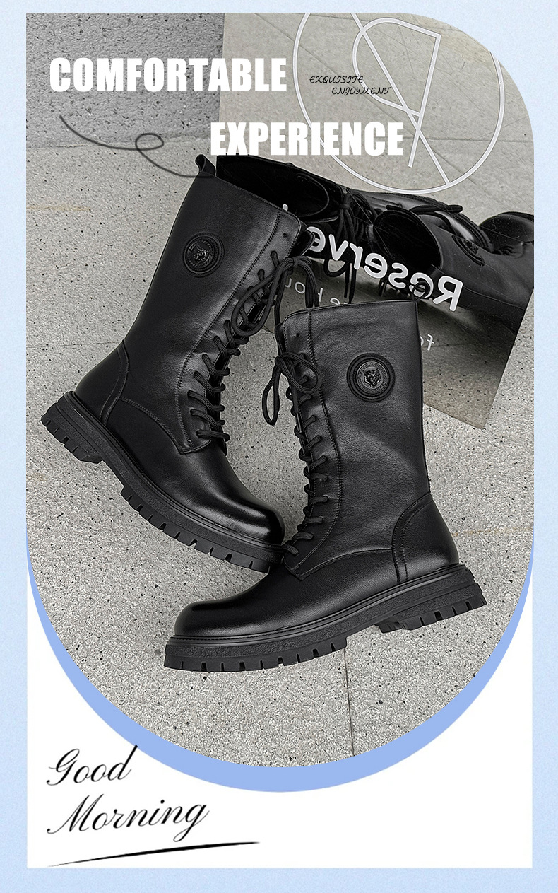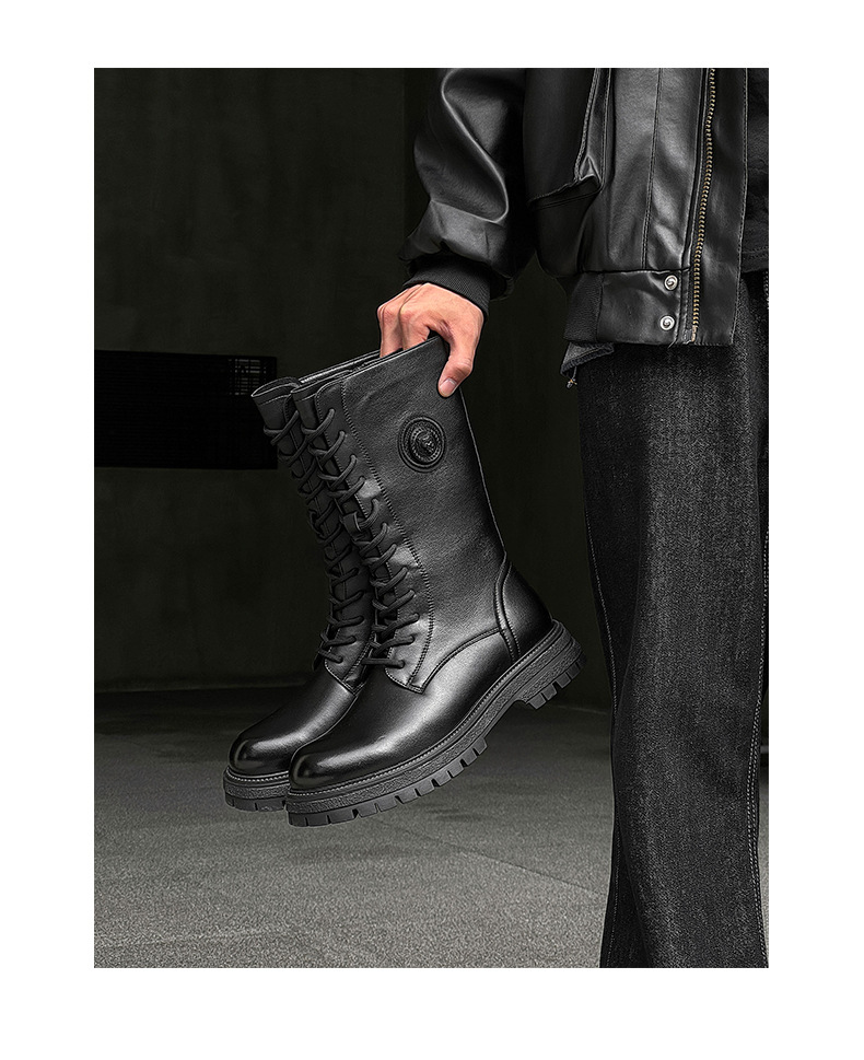 영국 스타일 레트로 툴링 부츠 긴 배럴 두꺼운 밑창 높이 증가 마틴 부츠 겨울 따뜻한 오토바이 라이더 부츠 유행 남성 부츠