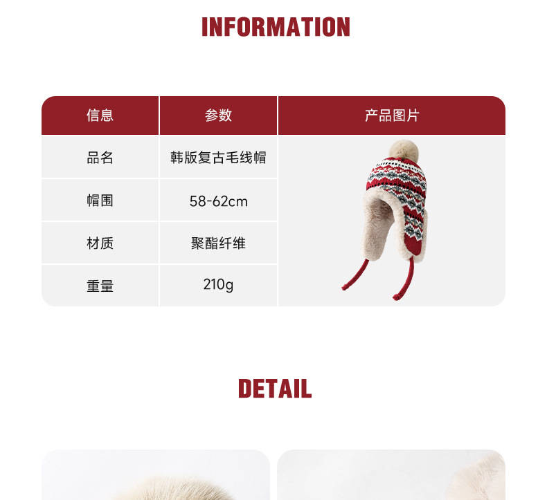 방냉형 레이 펑 모자 여성 한국식 복고풍 얼굴-작은 겨울 봉제 두꺼운 따뜻한 승마 귀 보호 울 모자 어린이를위한스토어 가기