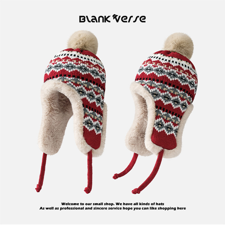 방냉형 레이 펑 모자 여성 한국식 복고풍 얼굴-작은 겨울 봉제 두꺼운 따뜻한 승마 귀 보호 울 모자 어린이를위한