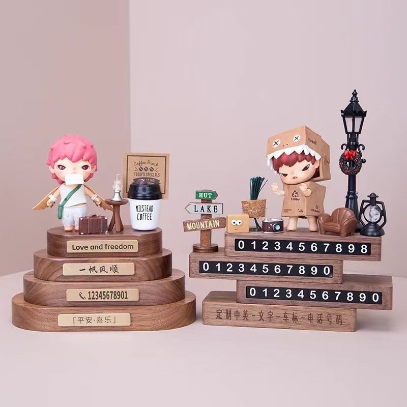 단단한 나무 타원형 나무 블록 베이스 장식품, 번호판 DIY 소형 액세서리, 도로 표지판, 형광 숫자 스티커, 흔적 없는 접착제 만화스토어 가기