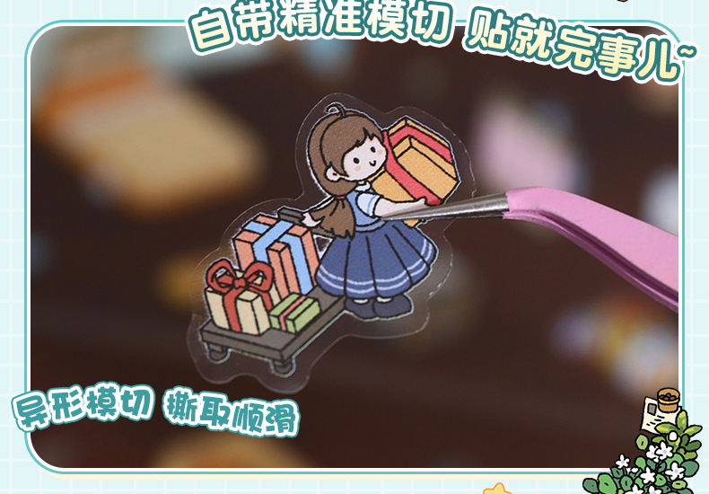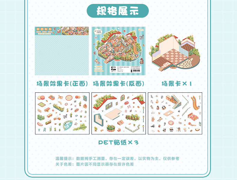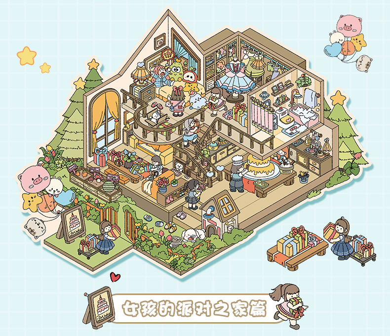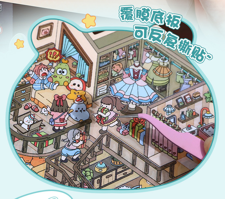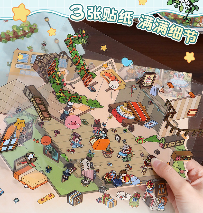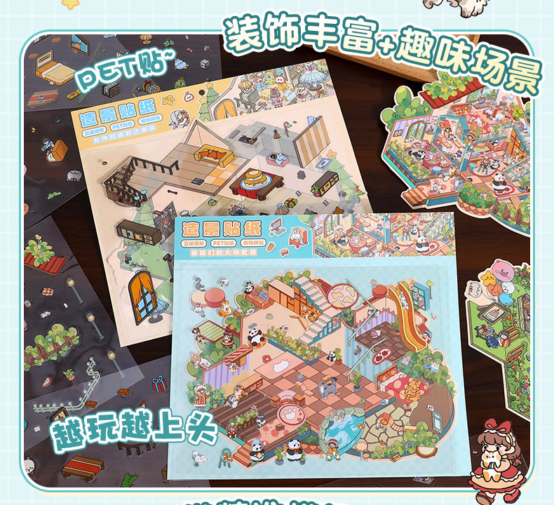 귀여운 슈퍼 대형 마이크로 스케일 장면 스티커 만화 Guofeng 팬더 빌라 쌓인 3D 스테레오 스티커스토어 가기