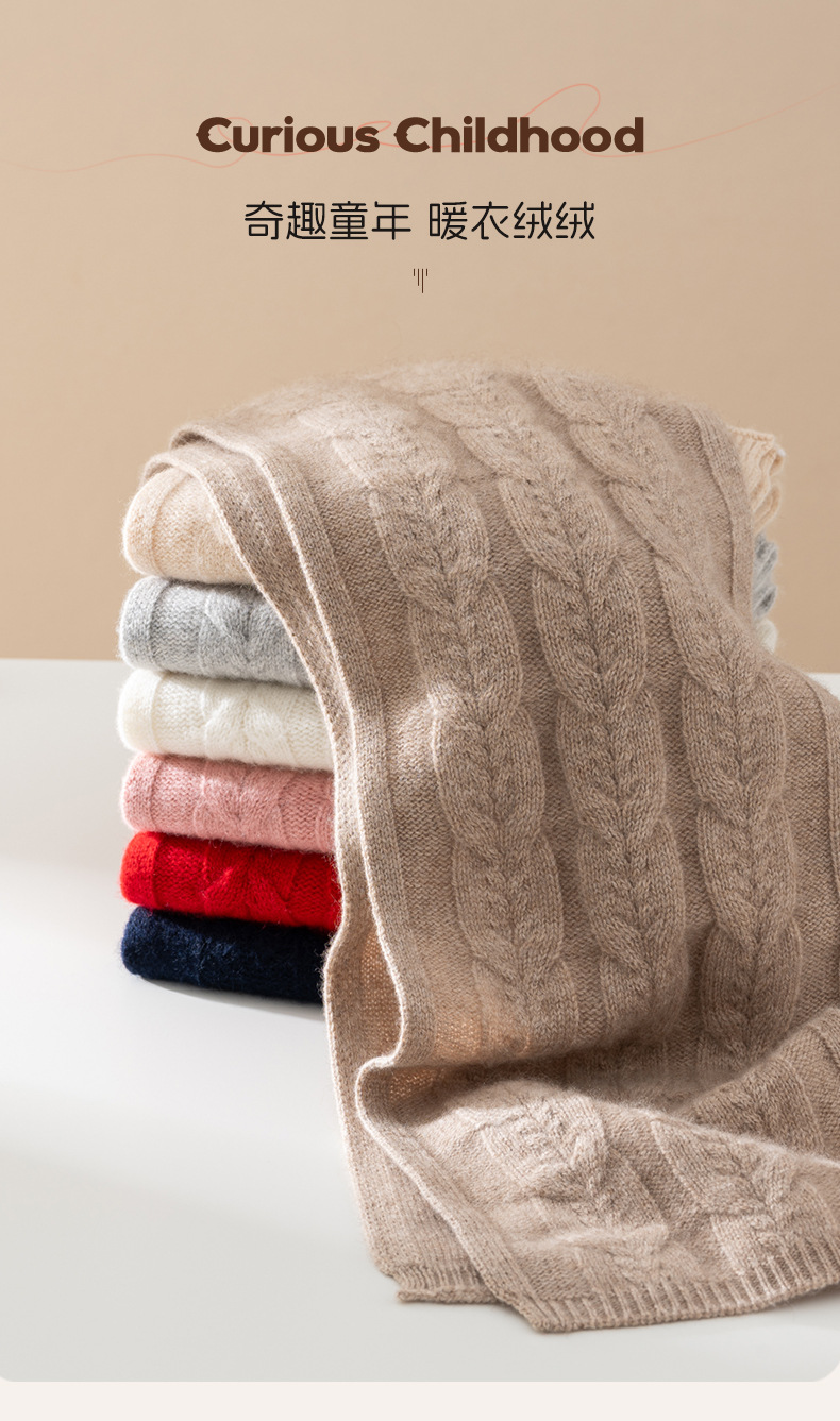 2024 가을과 겨울 새로운 어린이 캐시미어 스카프 소년과 소녀 아기 니트 따뜻한 단색 올 매치 울 작은 스카프