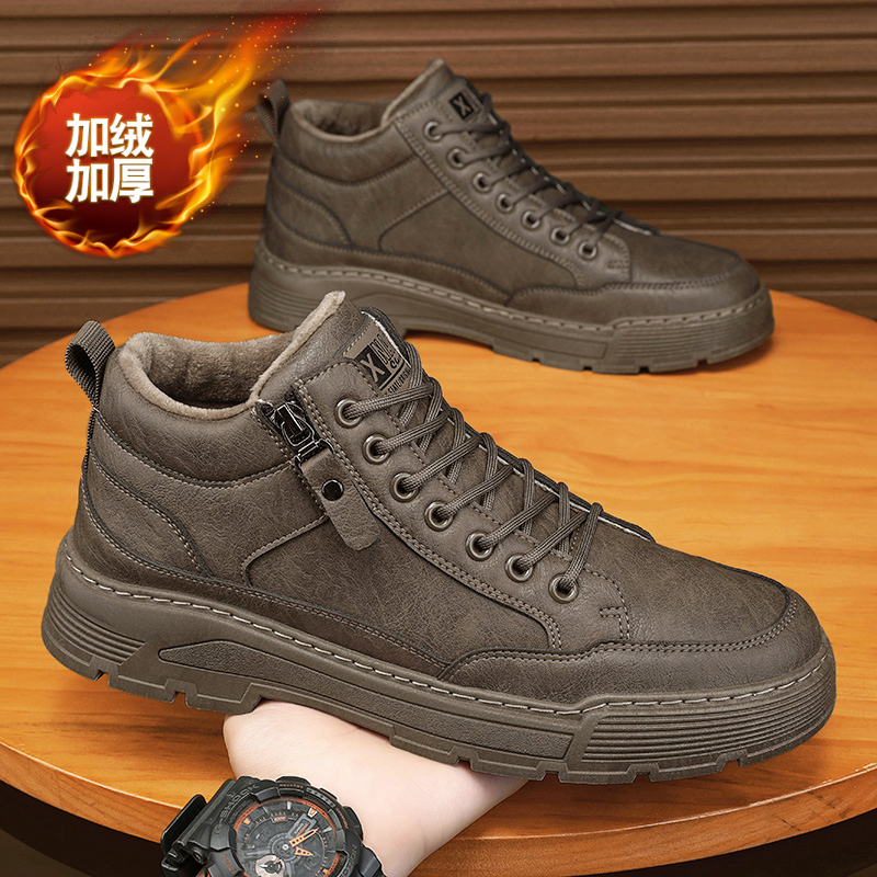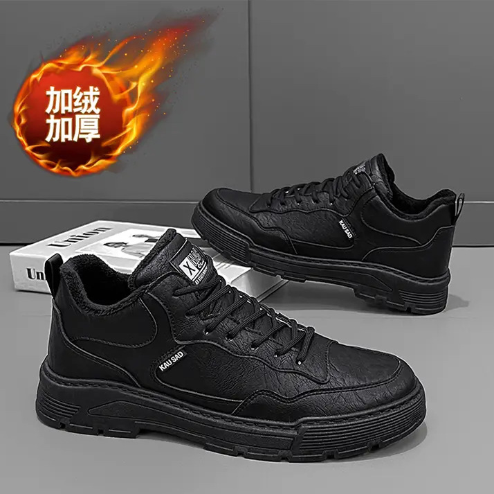 남성용 신발 겨울 기모 따뜻한 코튼 신발 방수 미끄럼 방지 운동화 스포츠 캐주얼 영국 가죽 신발 작업 유행 신발스토어 가기
