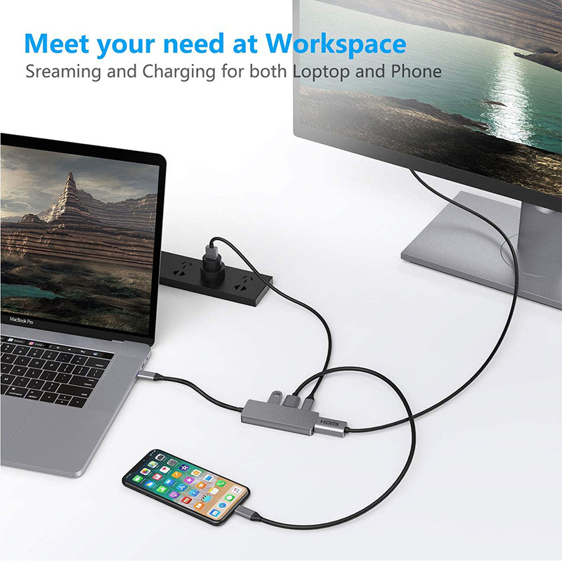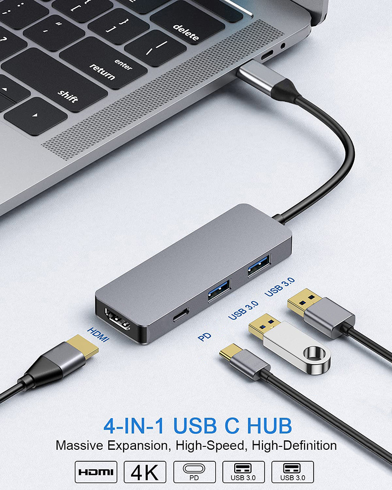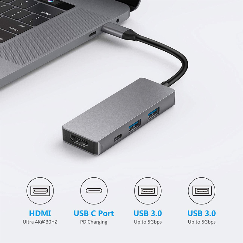 Type-c to HDMI PD USB3.0 4 대 1 도킹 스테이션 허브 노트북 익스텐더 확장 도크스토어 가기