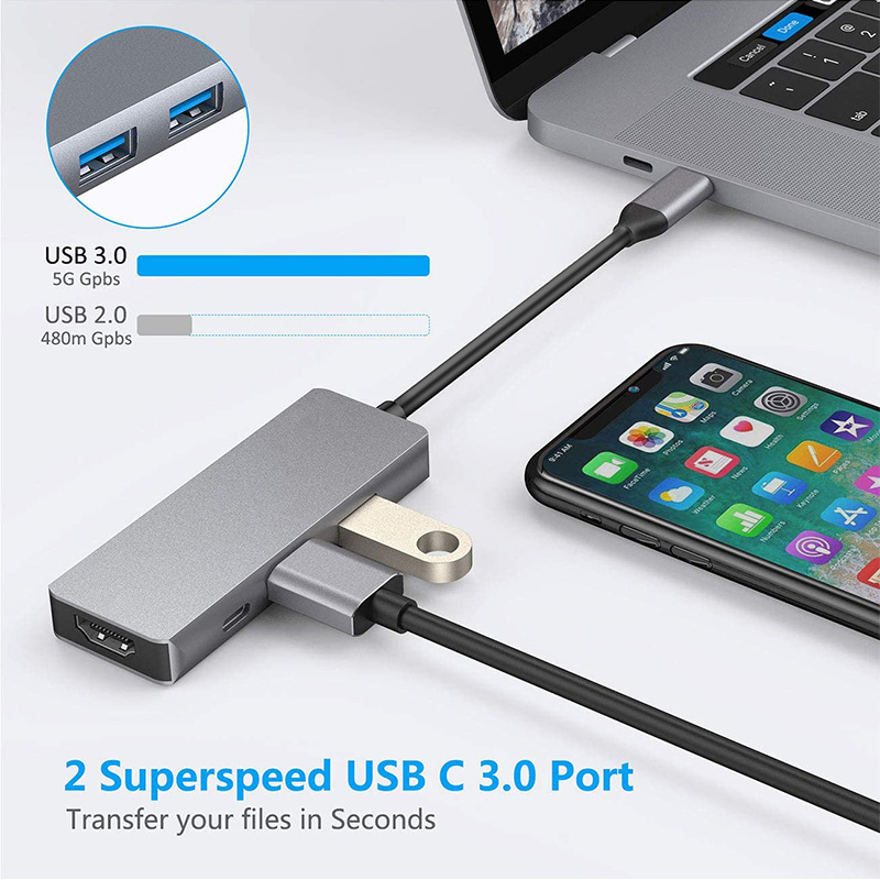 Type-c to HDMI PD USB3.0 4 대 1 도킹 스테이션 허브 노트북 익스텐더 확장 도크