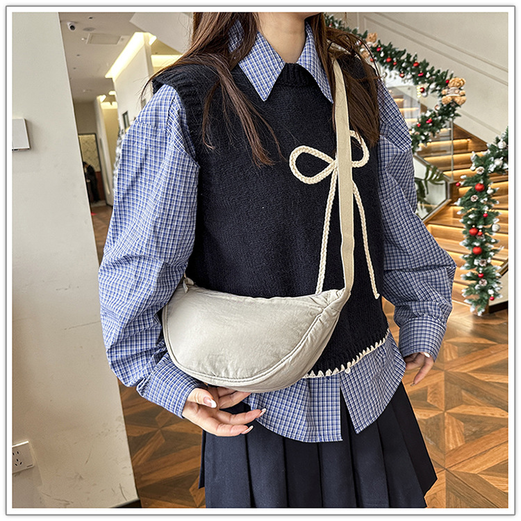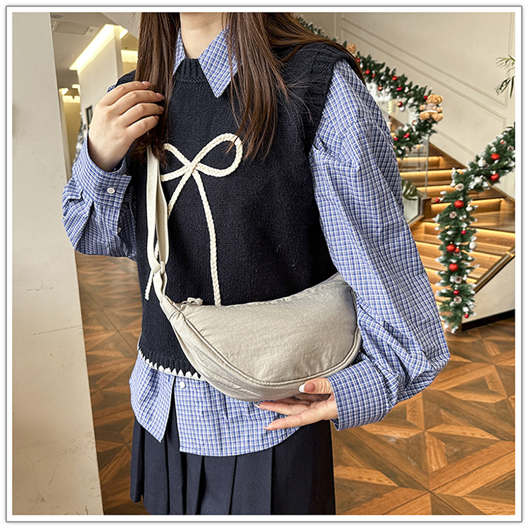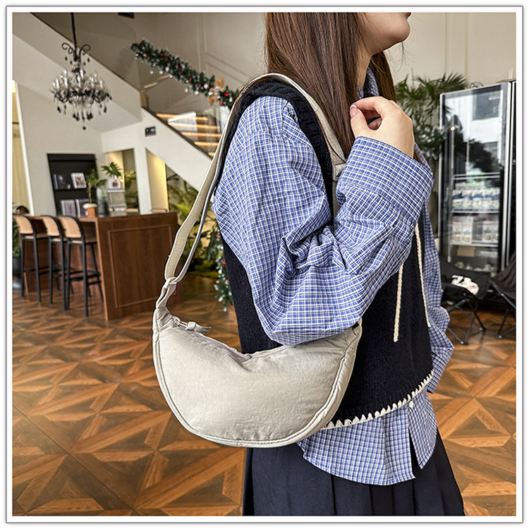 어깨 가방 일본식 Ins 솔리드 컬러 캐주얼 야외 보관 만두 백 남성과 여성의 간단한 올 매치 U 스타일 크로스 바디 백스토어 가기