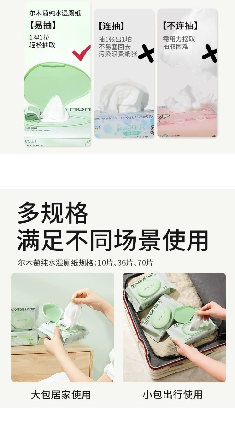 Ermu 포도 젖은 화장지 가정용 헹굴 순수한 물 젖은 화장지 엉덩이를 닦을 수있는 일회용 가정용 저렴한 휴대용 정품스토어 가기