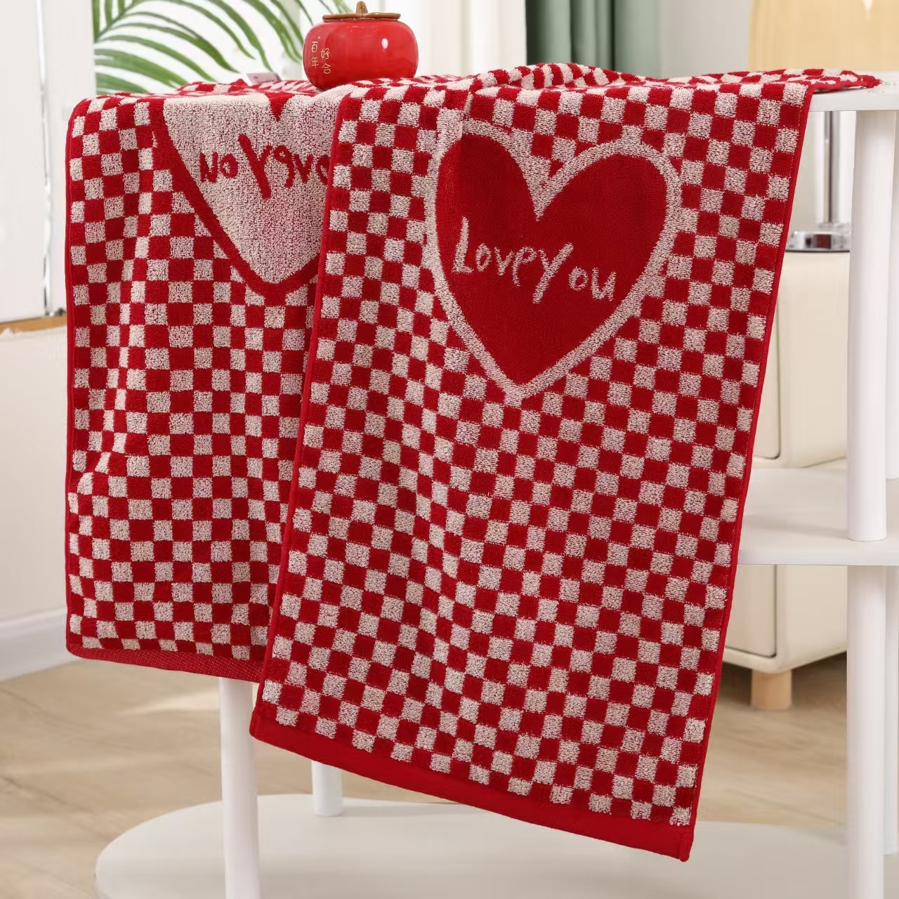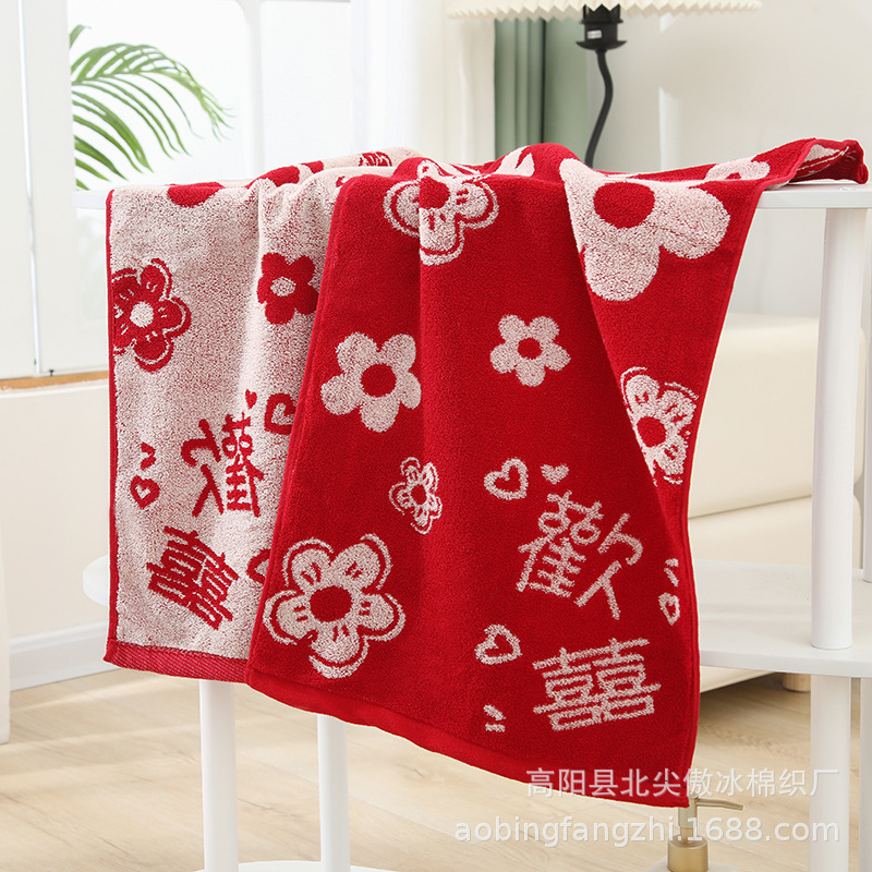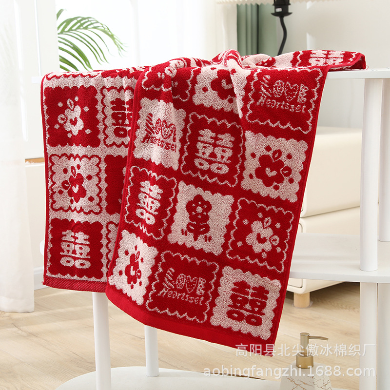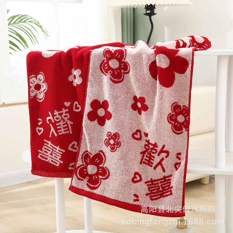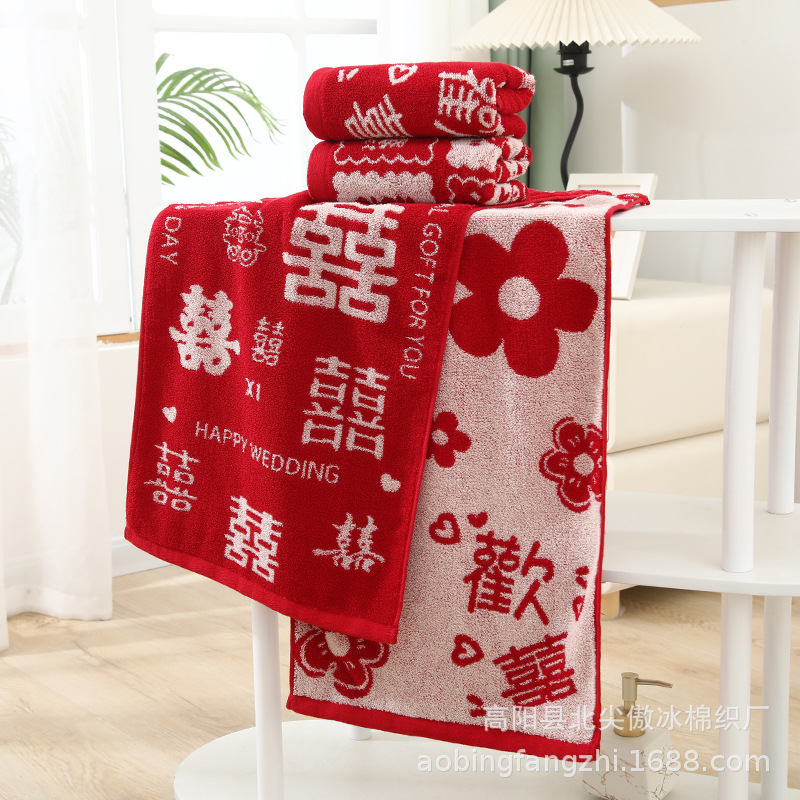 웨딩 타월 레드 해피 캐릭터 동반 워시 코튼 여자의 반환 선물 동반 고급 웨딩 페이스 타월 해피 캐릭터 스퀘어 타월