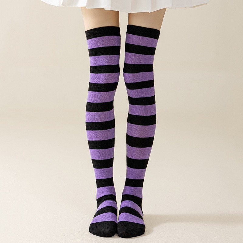줄무늬 스타킹 여성 일본 파란색과 흰색 줄무늬 무릎 양말 허벅지 양말 COSPLAY 애니메이션 여성 양말 도매
