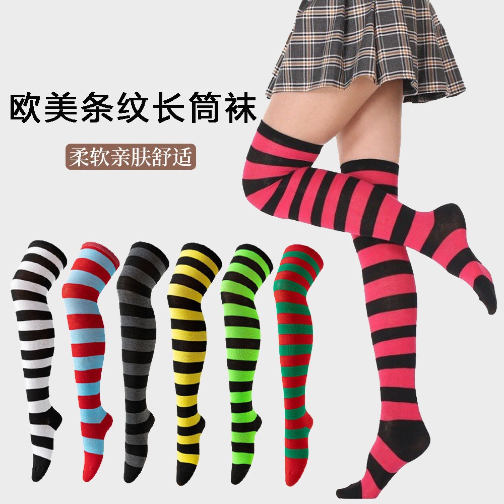 줄무늬 스타킹 여성 일본 파란색과 흰색 줄무늬 무릎 양말 허벅지 양말 COSPLAY 애니메이션 여성 양말 도매스토어 가기