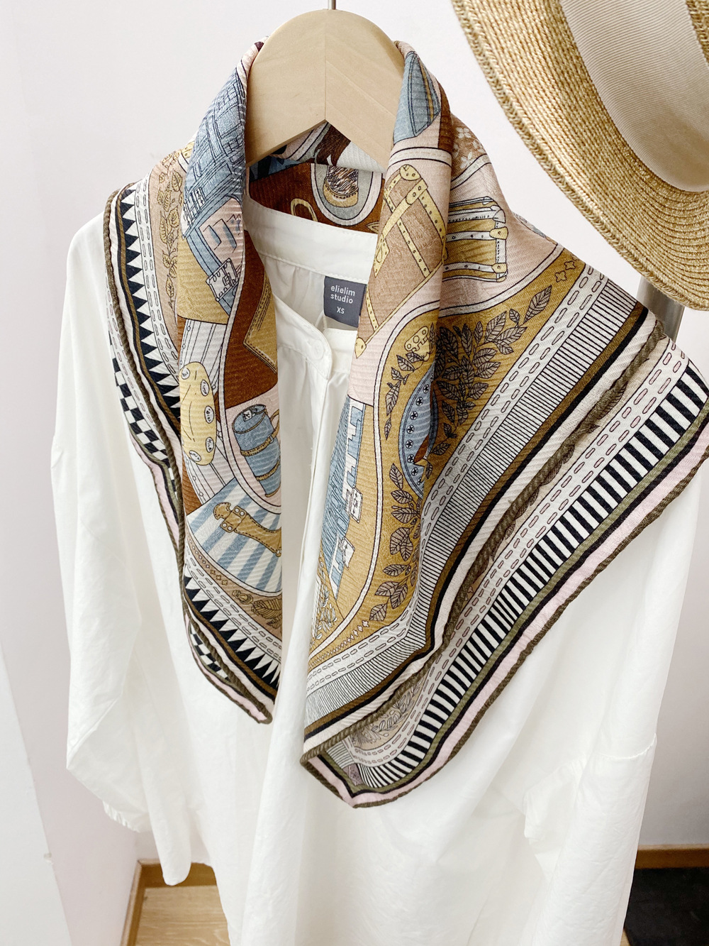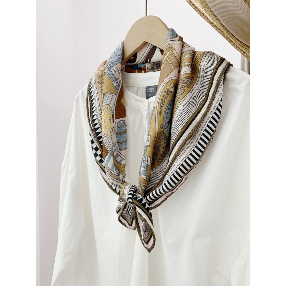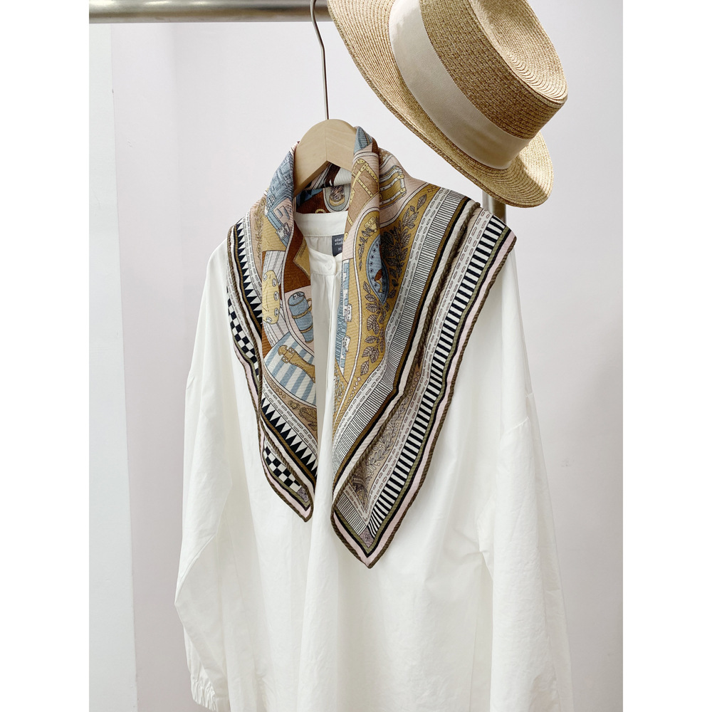 고급 자카드 공예 양면 인쇄 실크 울 중간 사각형 스카프 여성 패션 스카프 천연 소재 혼합 실크 스카프 새로운 스타일스토어 가기