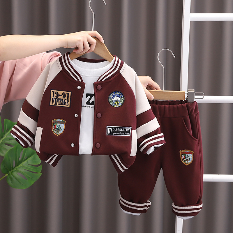 소년의 봄 가을 세트 2025 새로운 아기 어린이 서양식 옷 캐주얼 어린이 아기 야구 세트 3 조각 조수스토어 가기