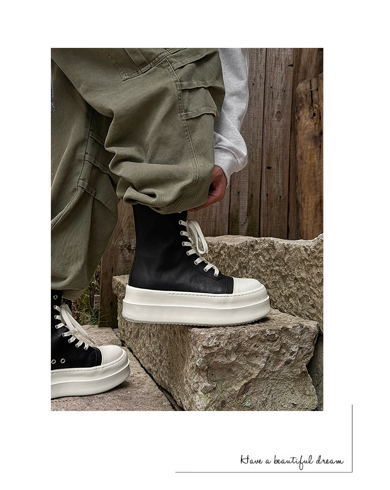 남성과 여성을위한 다크 시리즈 두꺼운 밑창 높이 증가 보드 신발 2024 새로운 높이 증가 운동화 증가하는 캐주얼 하이탑 신발