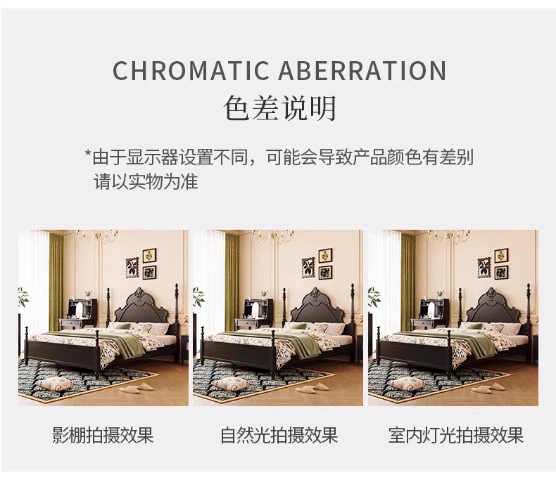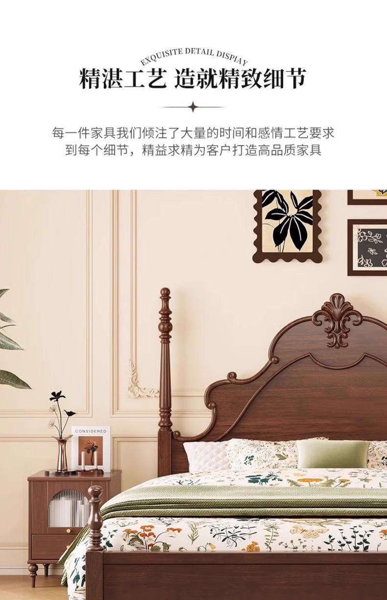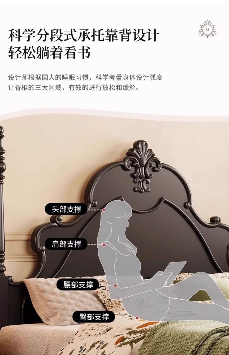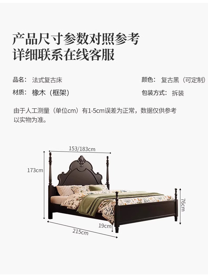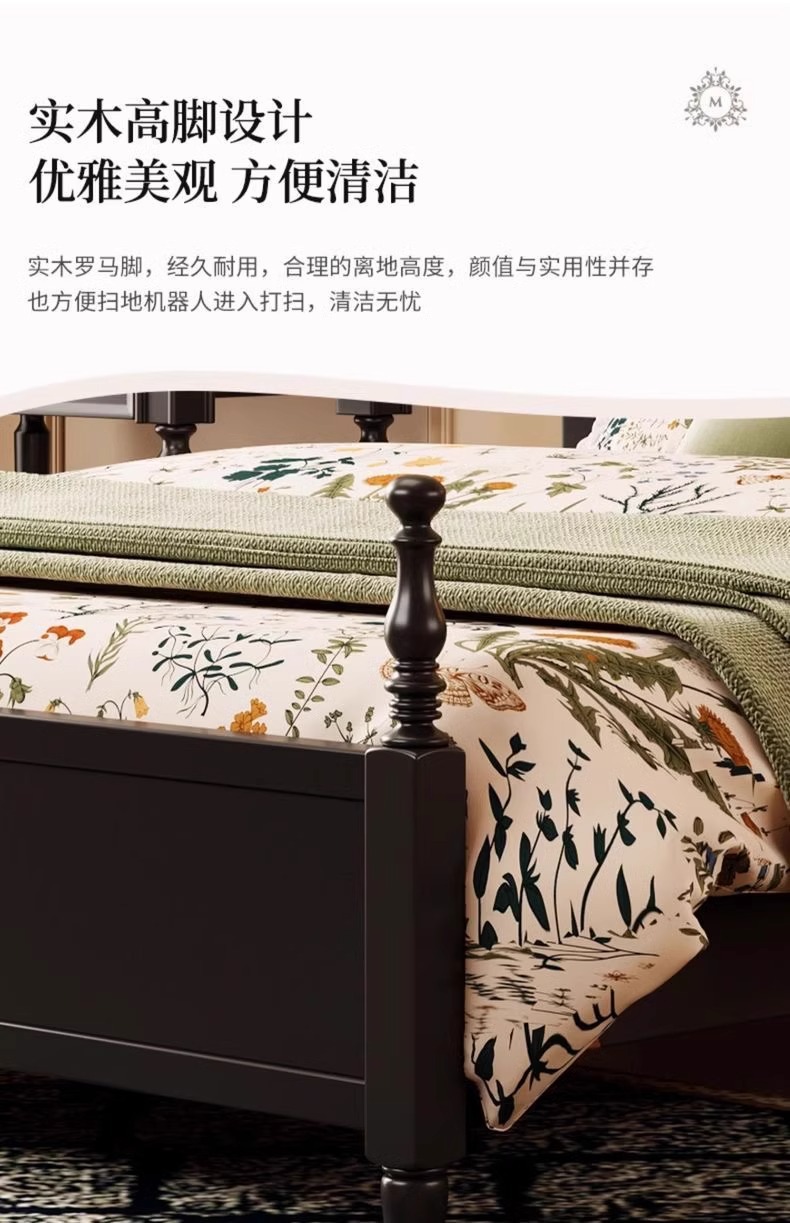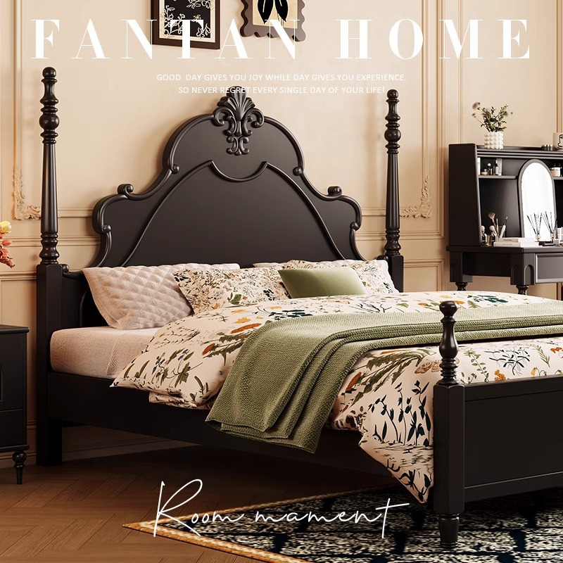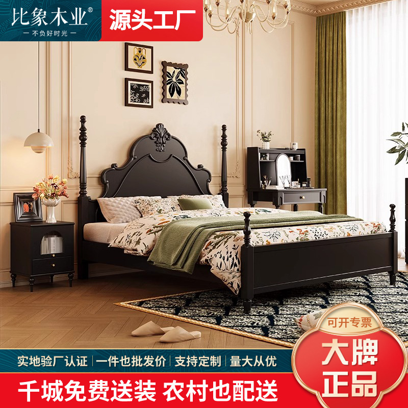 프랑스 레트로 블랙 솔리드 우드 침대 에펠 골동품 더블 침대 마스터 침실 1.8M 가정용 높은 상자 보관스토어 가기