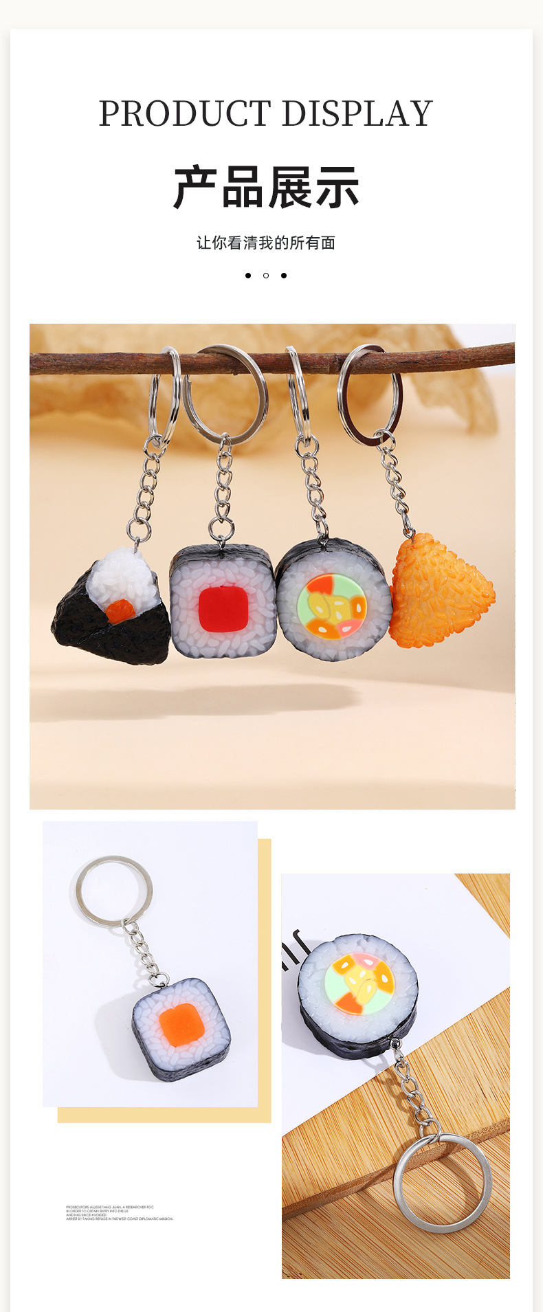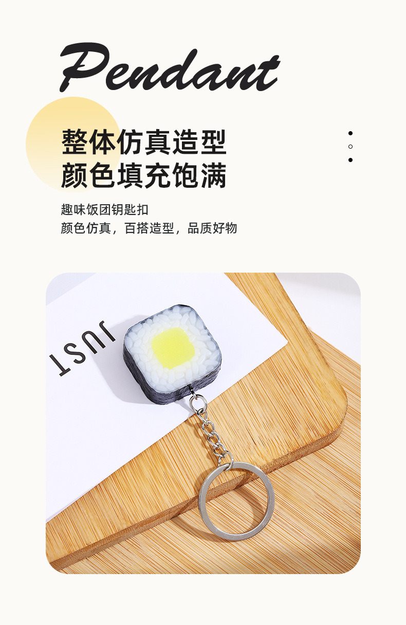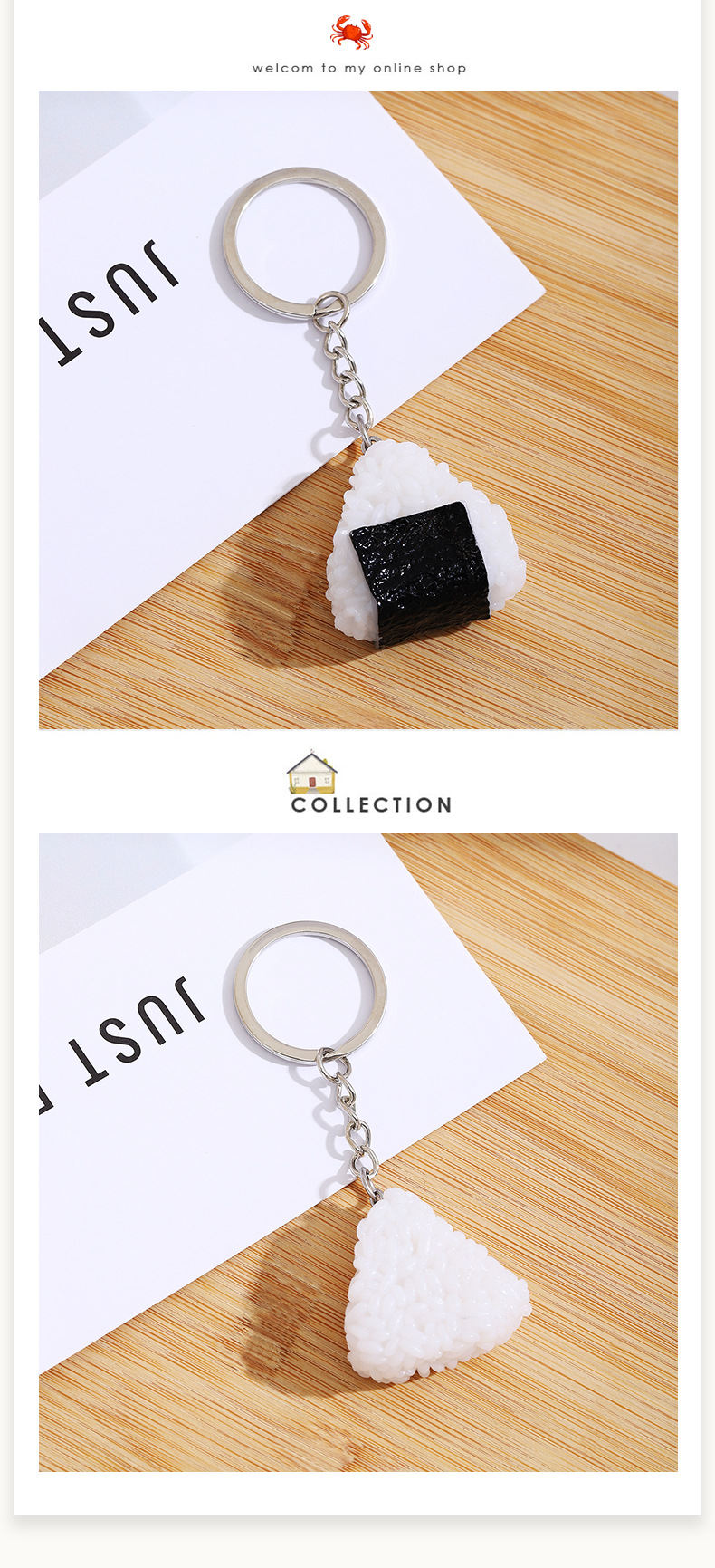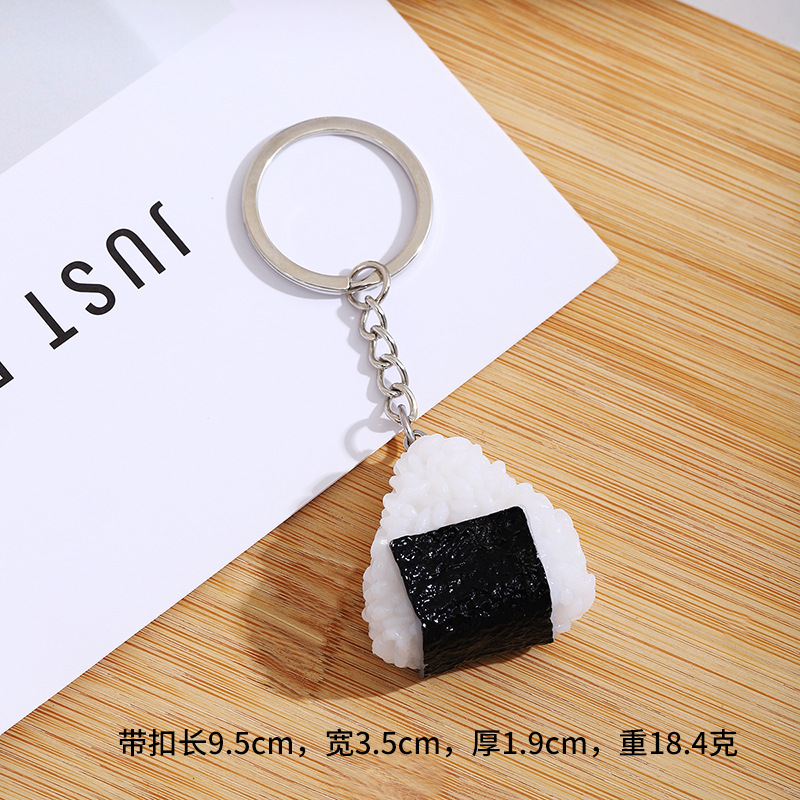 시뮬레이션 기하학적 주먹밥 열쇠 고리 펜던트 창조적 인 일본 해초 김 초밥 모델 작은 크라우드 팩 장식품스토어 가기