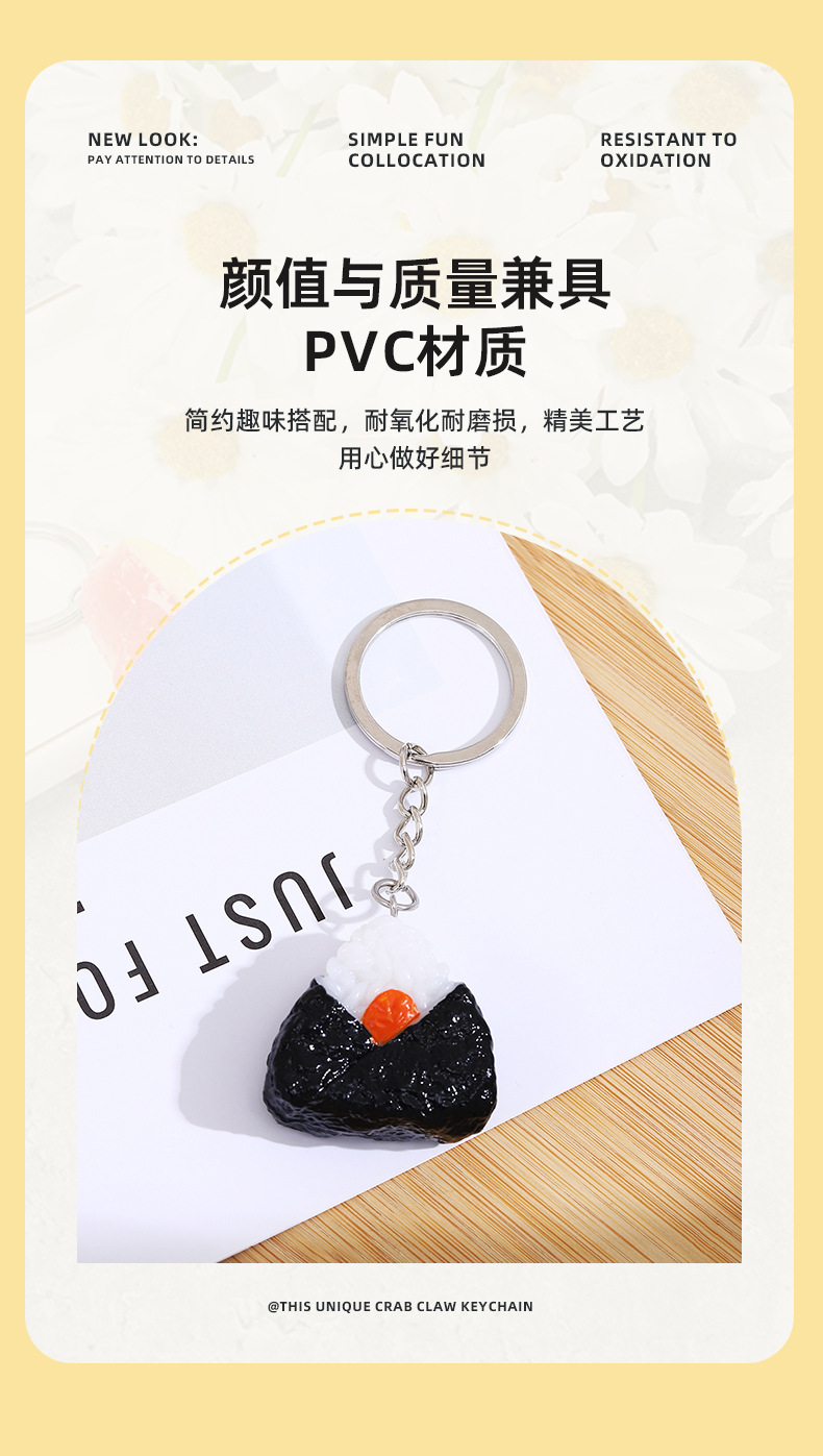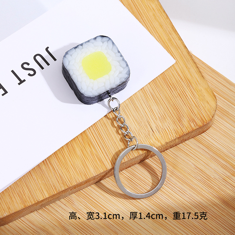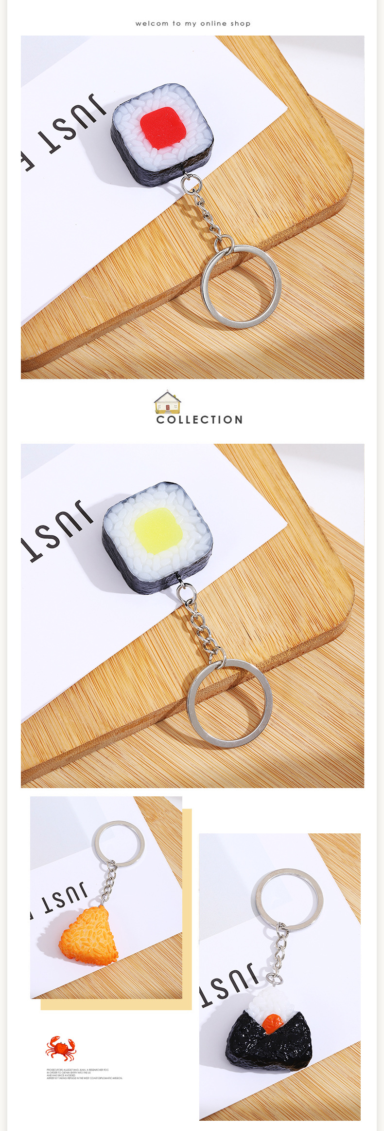 시뮬레이션 기하학적 주먹밥 열쇠 고리 펜던트 창조적 인 일본 해초 김 초밥 모델 작은 크라우드 팩 장식품스토어 가기