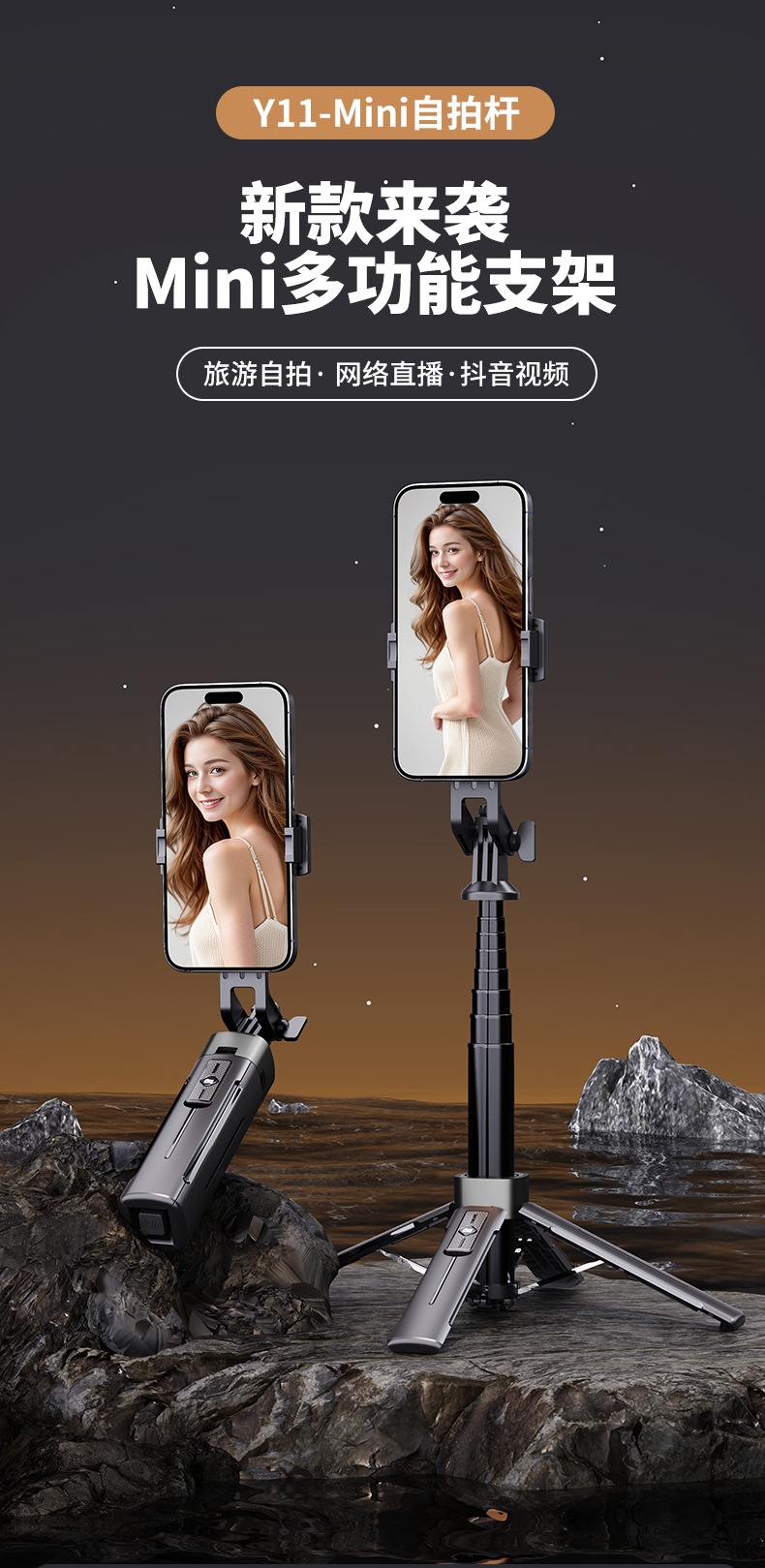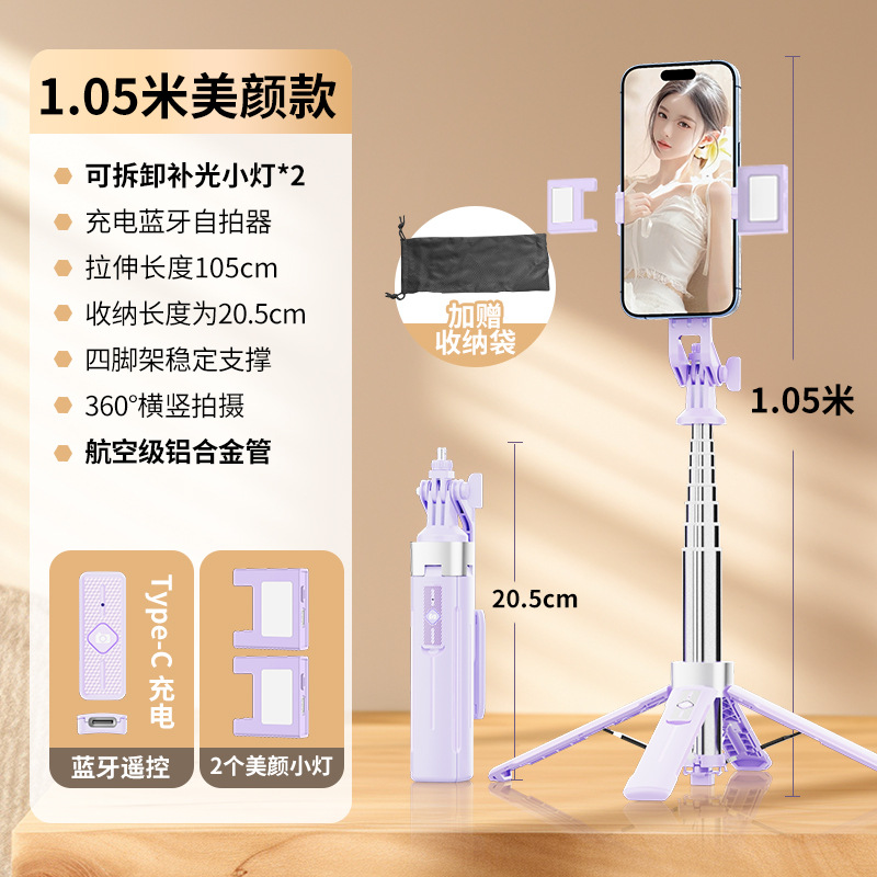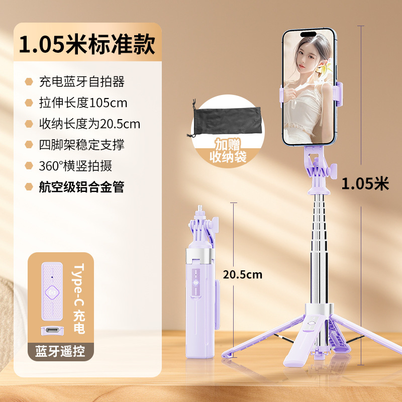 GoPro 카메라와 호환되는 2025 새로운 휴대 전화 셀카 스틱 블루투스 휴대 전화 스탠드 원 버튼 열린 사각 대