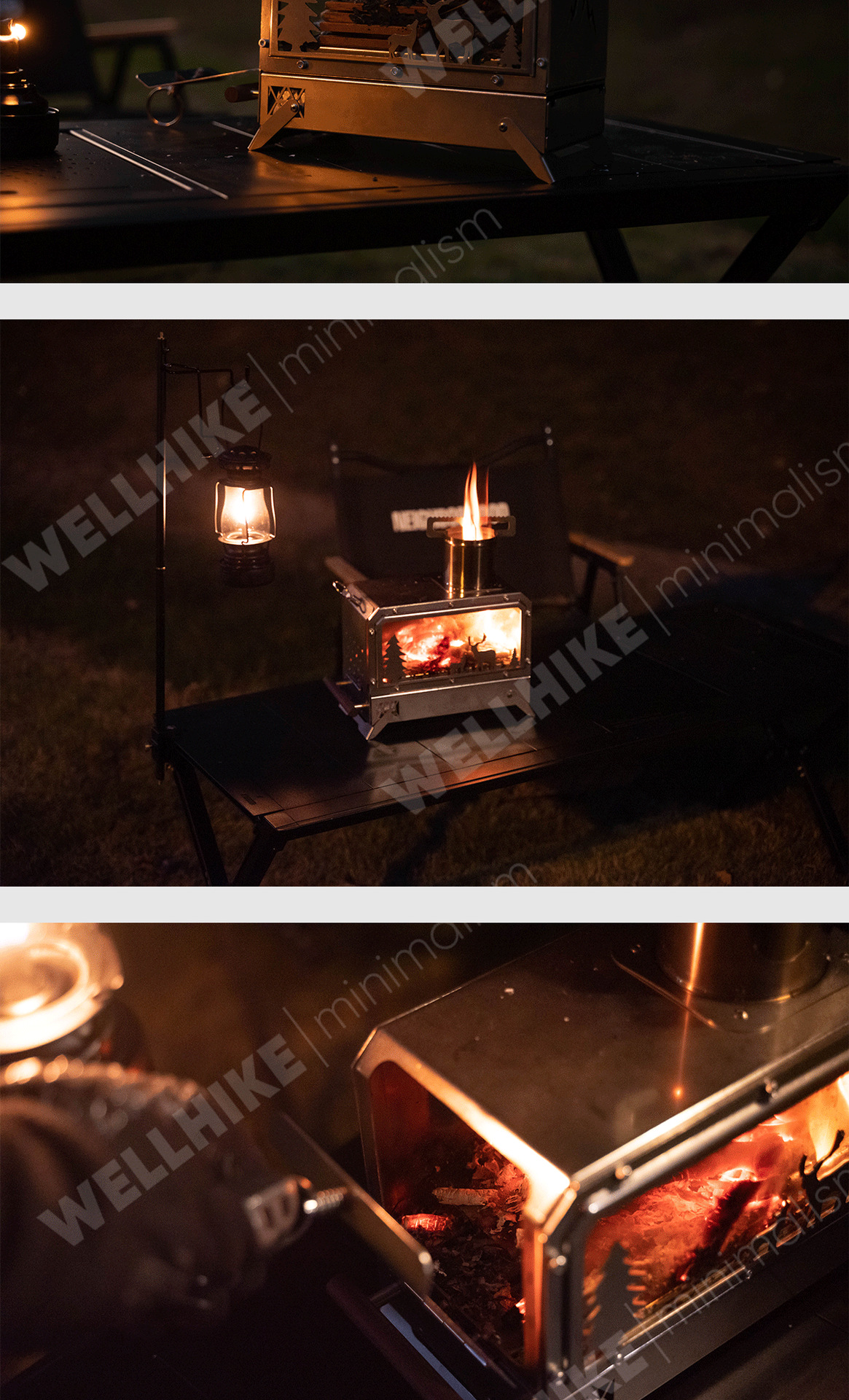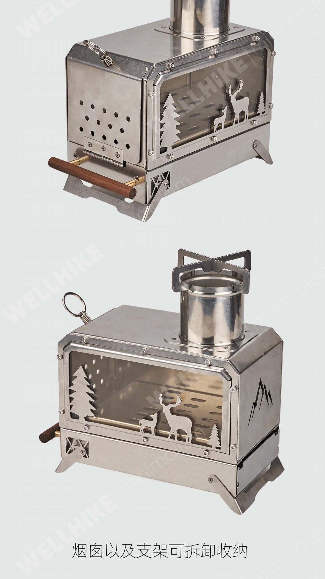 국경 간 야외 관광 캠핑 나무 스토브 텐트 난방 스토브 조명 피크닉 스테인레스 스틸 접이식 난방 스토브스토어 가기