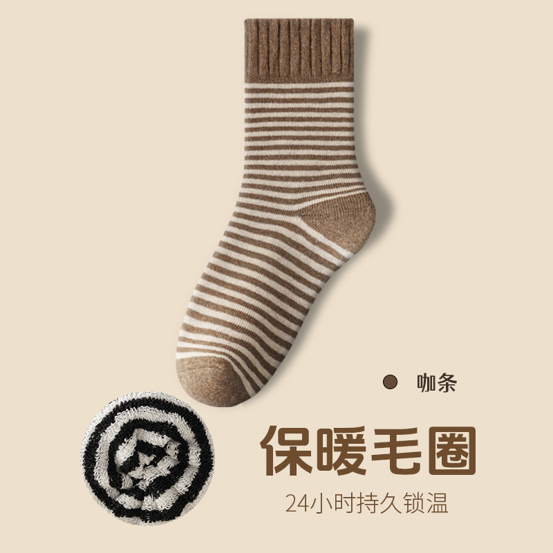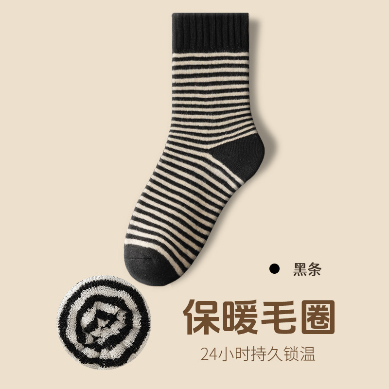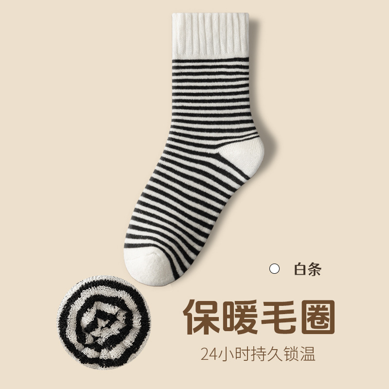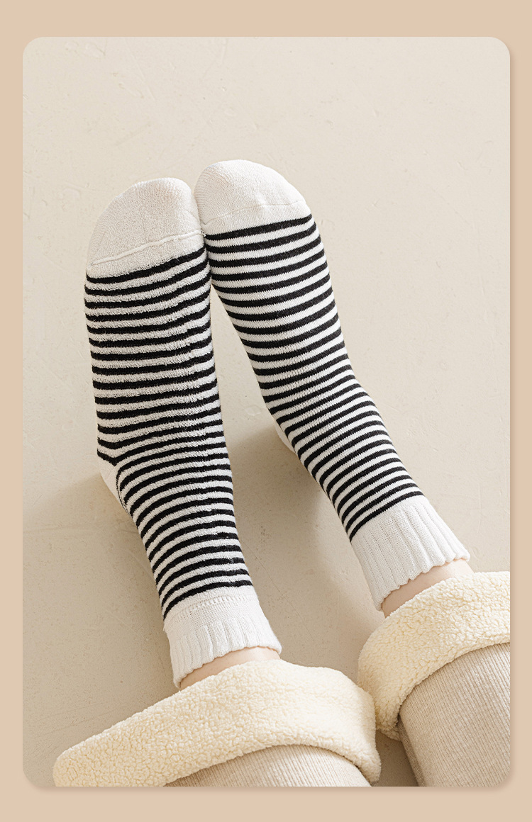 두꺼운 양말 여성의 가을과 겨울 양말 기모 길어진 줄무늬 바닥 양말 도매 겨울 따뜻한 여성 양말 테리 양말