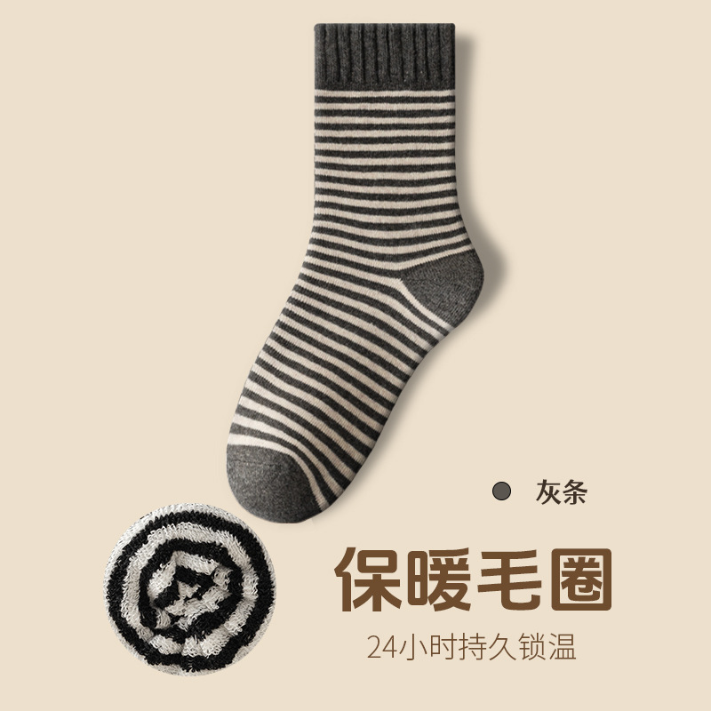 두꺼운 양말 여성의 가을과 겨울 양말 기모 길어진 줄무늬 바닥 양말 도매 겨울 따뜻한 여성 양말 테리 양말스토어 가기