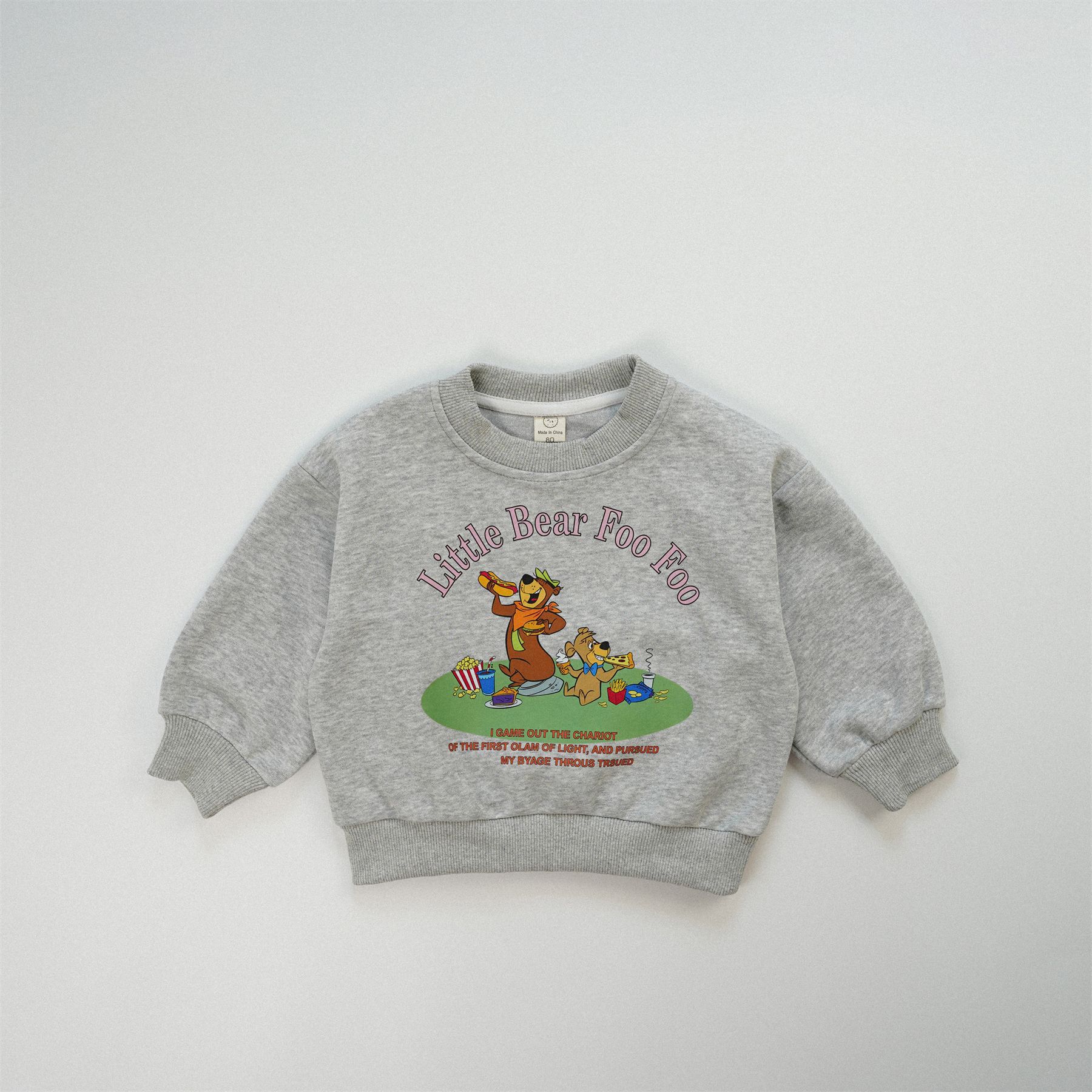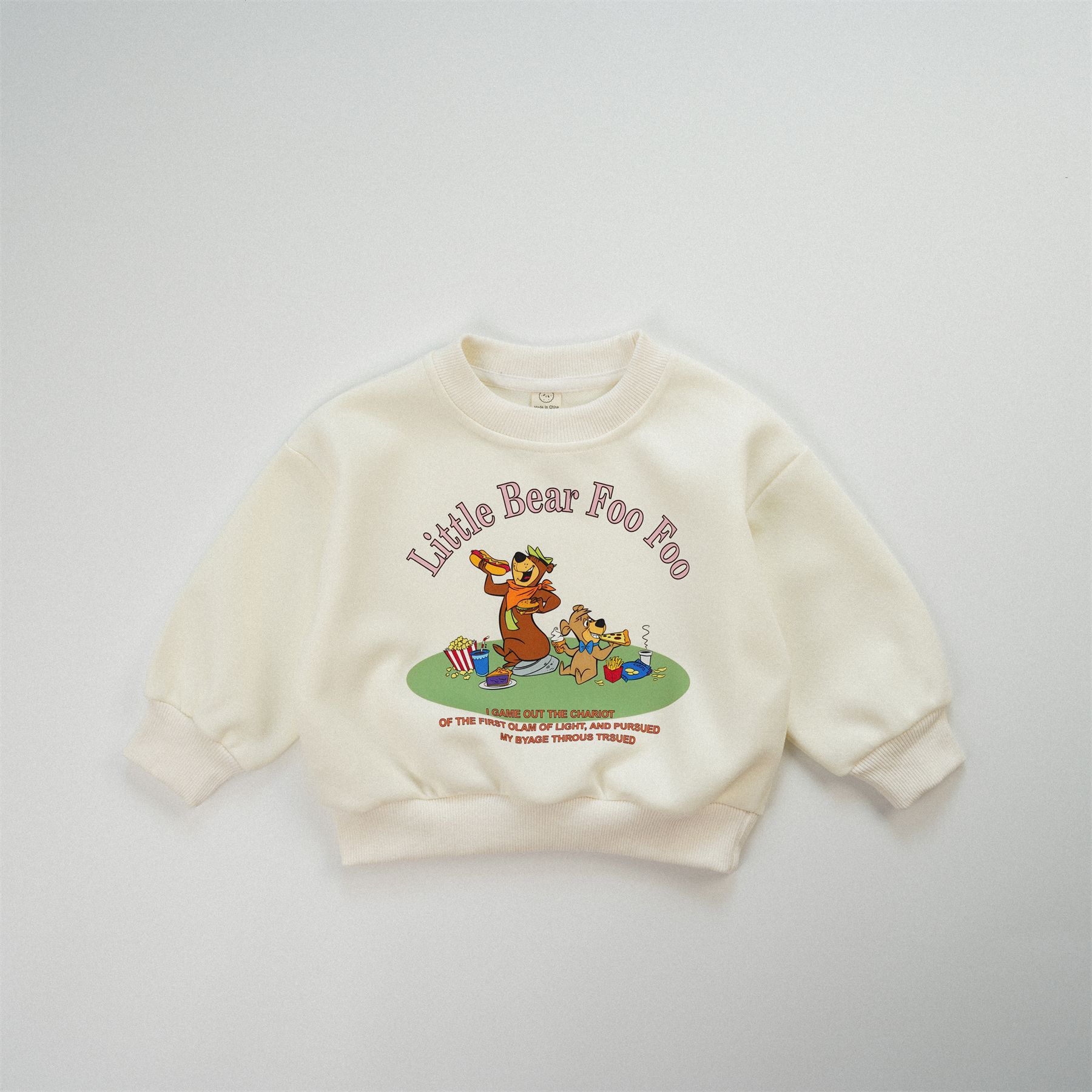 요기 곰 한국판 순면 만화 어린이 스웨터 봄과 가을 귀여운 둥근 목 베이비 코트 아동복 도매