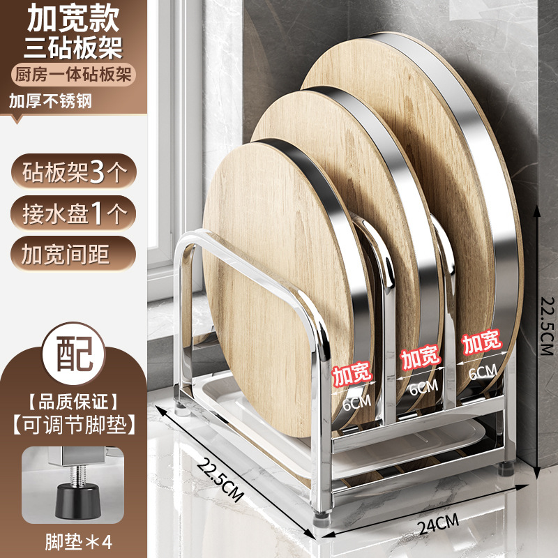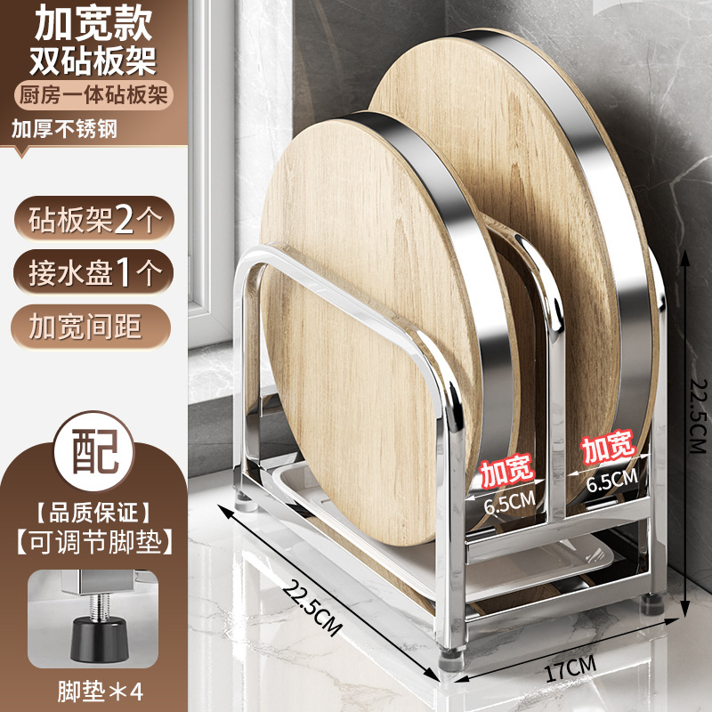 • [넓어진 간격] [초두꺼운 스테인레스] 더블 도마걸이 - 브라이트 실버