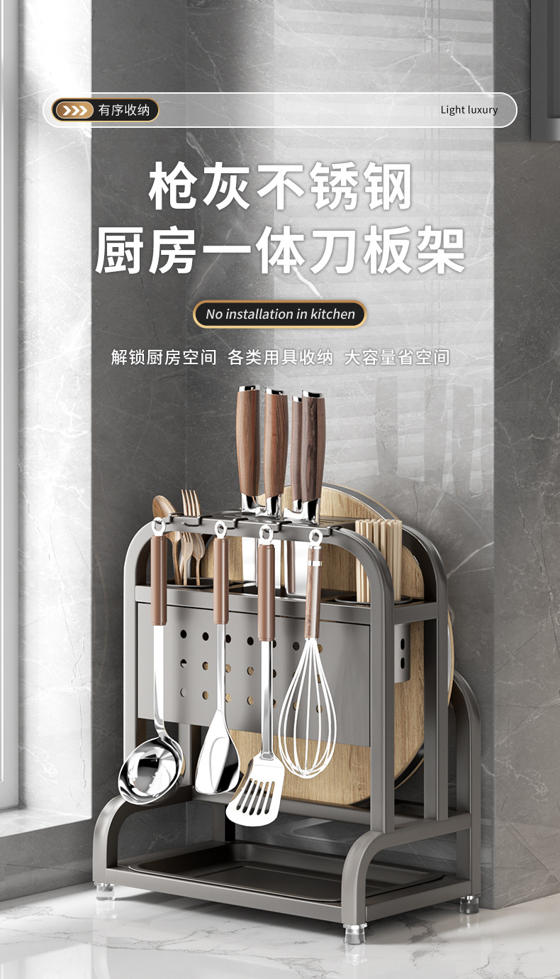 칼꽂이, 수납선반, 식칼, 젓가락, 도마, 냄비뚜껑, 칼류 일체형 수납선반, 무타공, 스테인리스