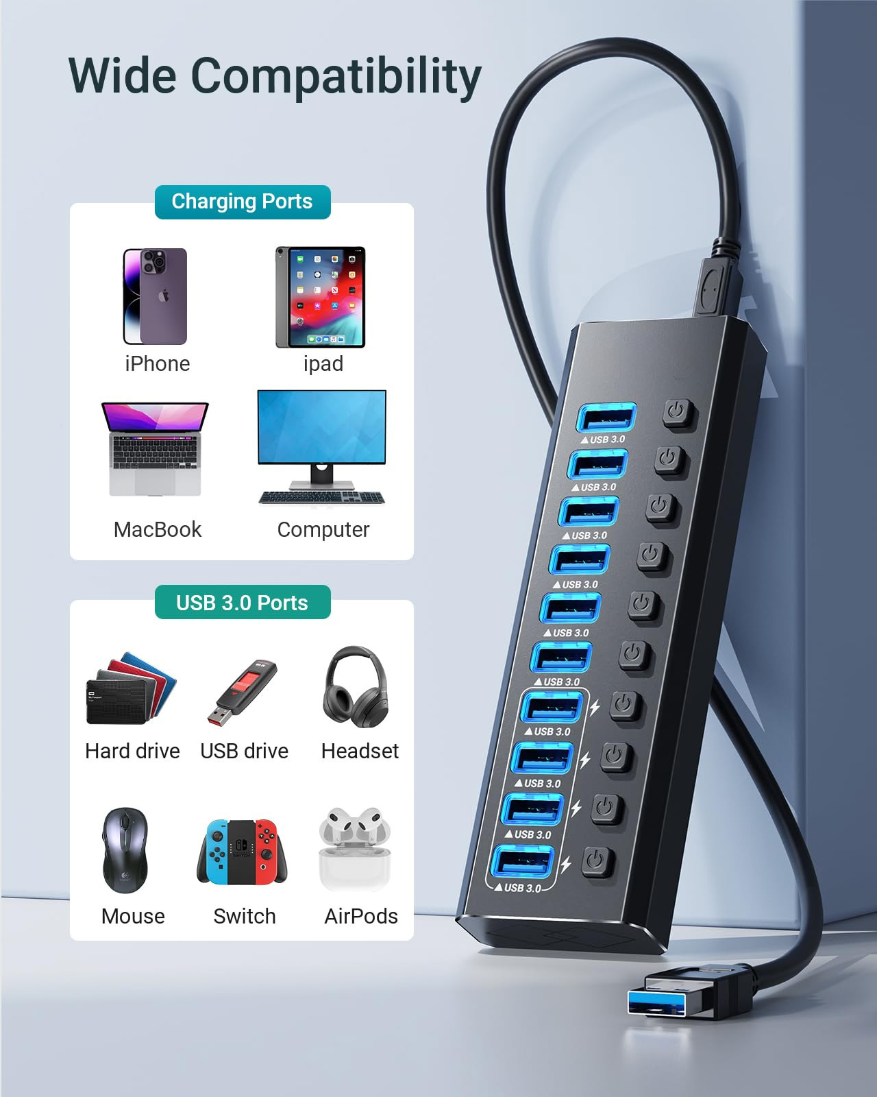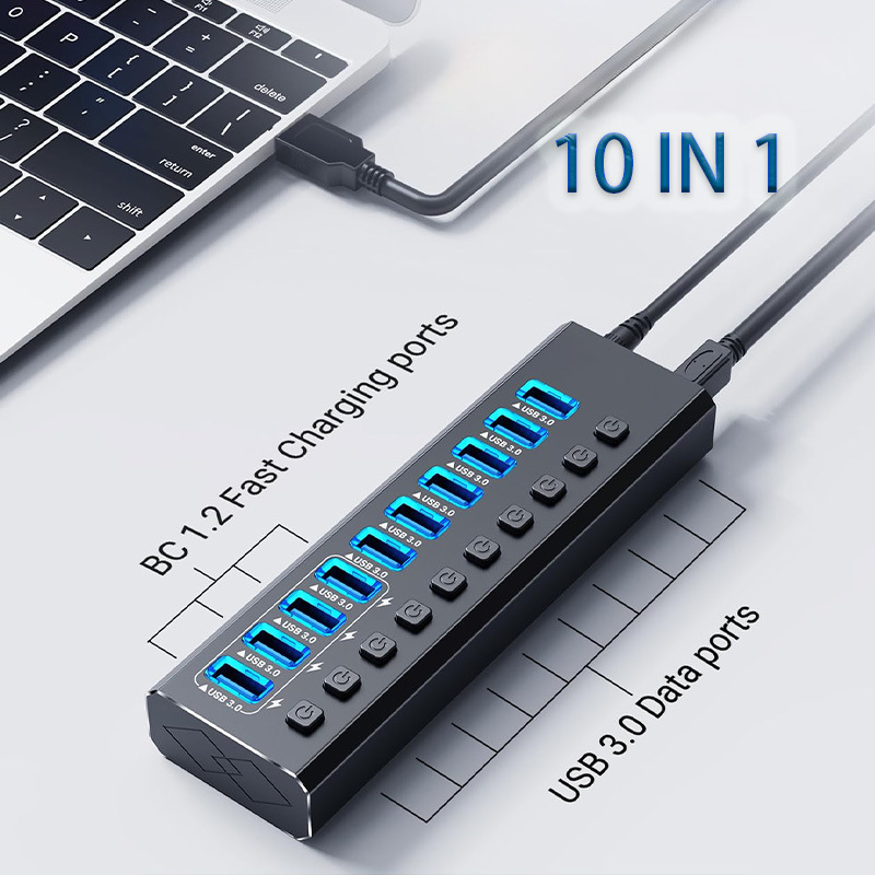 노트북 USB3.0 허브 10포트 독립 스위치 분배기 HUB 1대10 고속 확장기