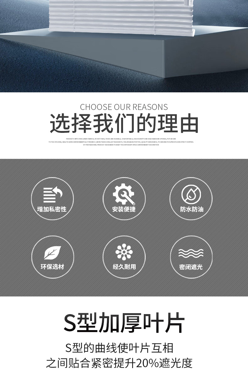 ⊕ 펀치 없는 블라인드, 완전 차광, 분해 없이 세탁 및 청소 가능, 방수 및 방유 차양 커튼, S자형 PVC 블라인드