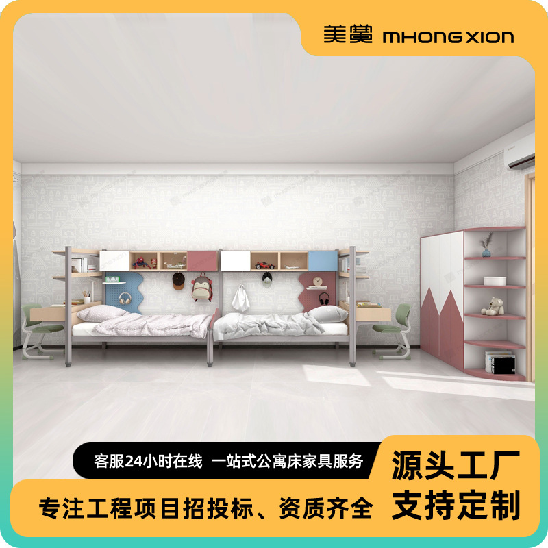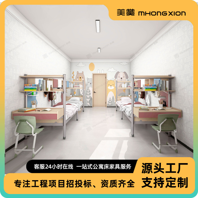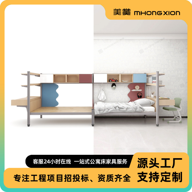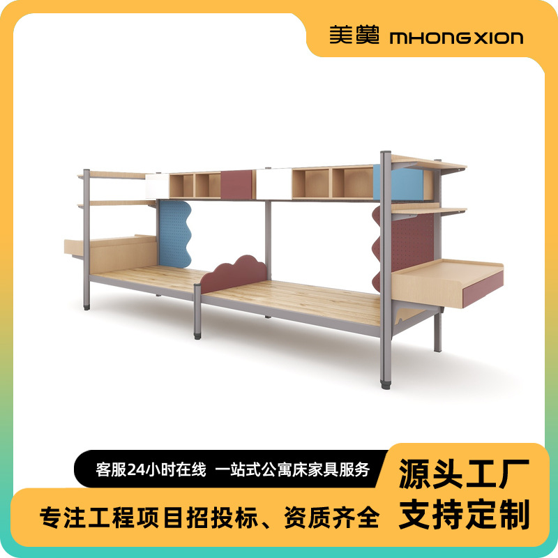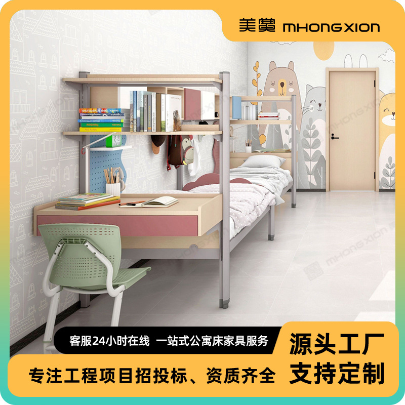 더블 룸 스틸 목재 통합 2 인용 다기능 낮은 침대 연구 테이블 옷장스토어 가기