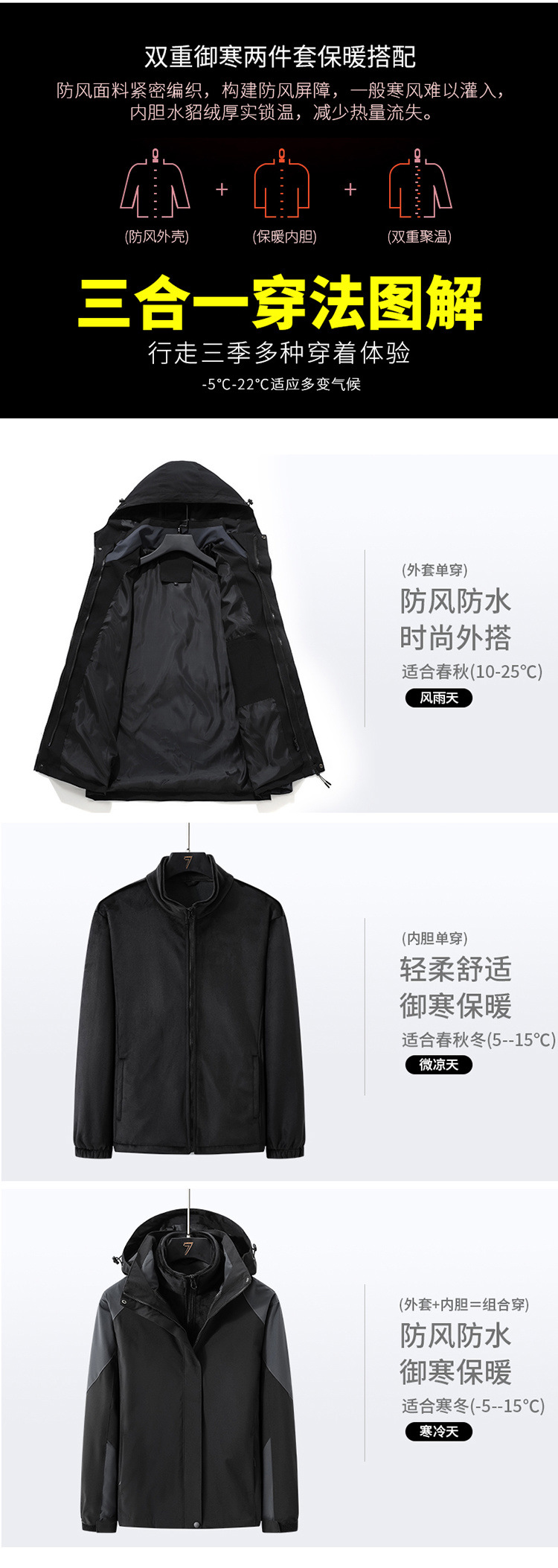 그룹 구매 맞춤형 야외 재킷 겨울 3 대 1 분리 가능한 커플 방풍 방수 재킷 남성 작업복스토어 가기