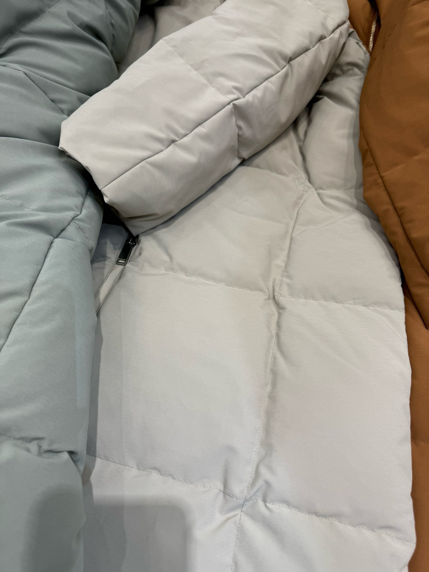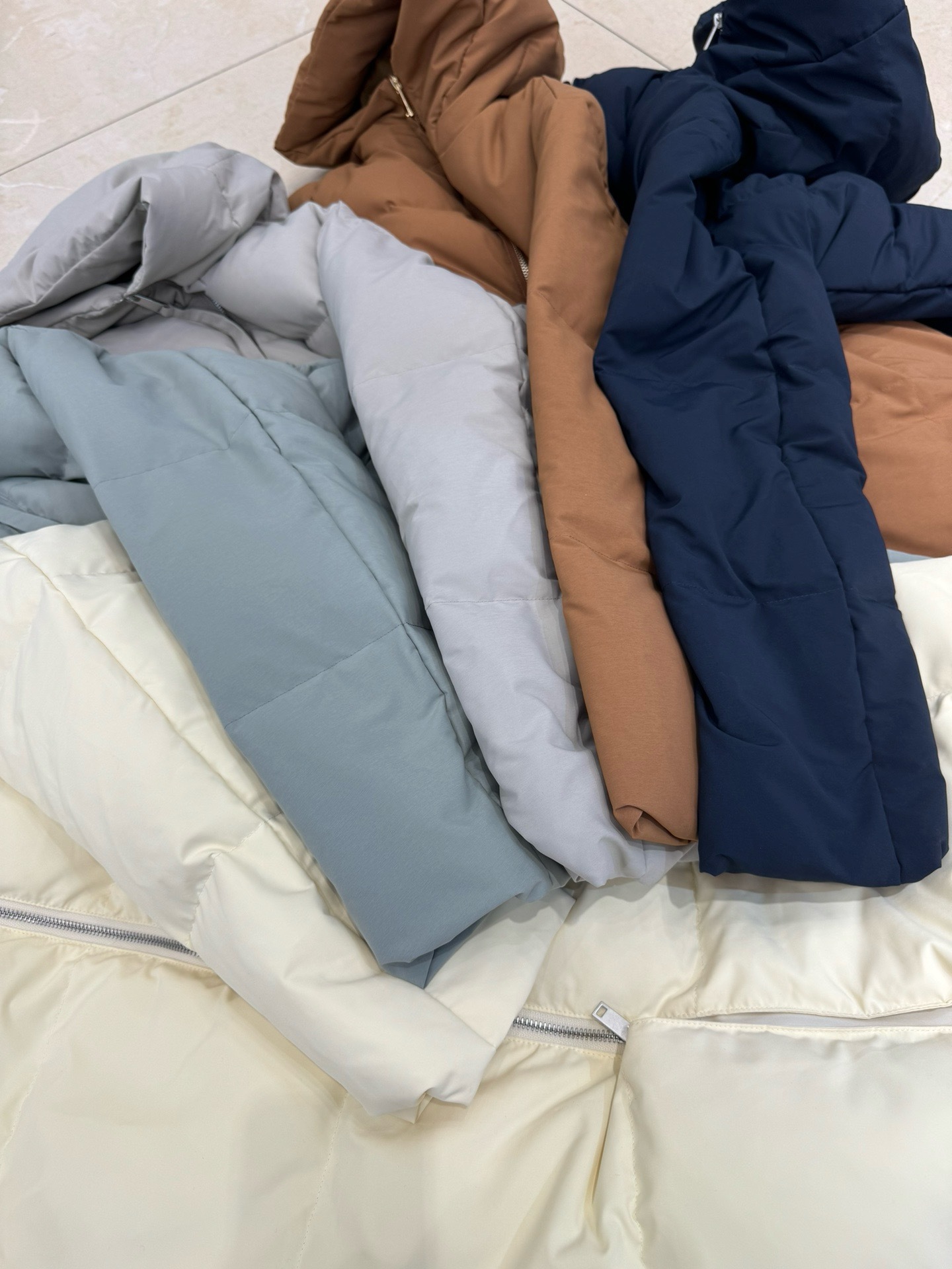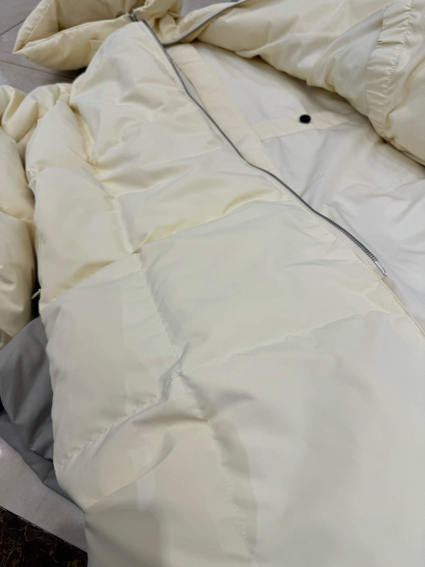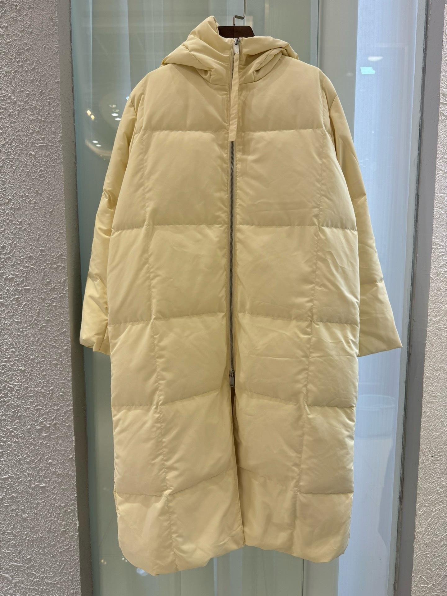 JIL24 겨울 새로운 미니멀리스트 하이 센스 푹신한 따뜻한 후드 무릎 다운 재킷 재킷스토어 가기