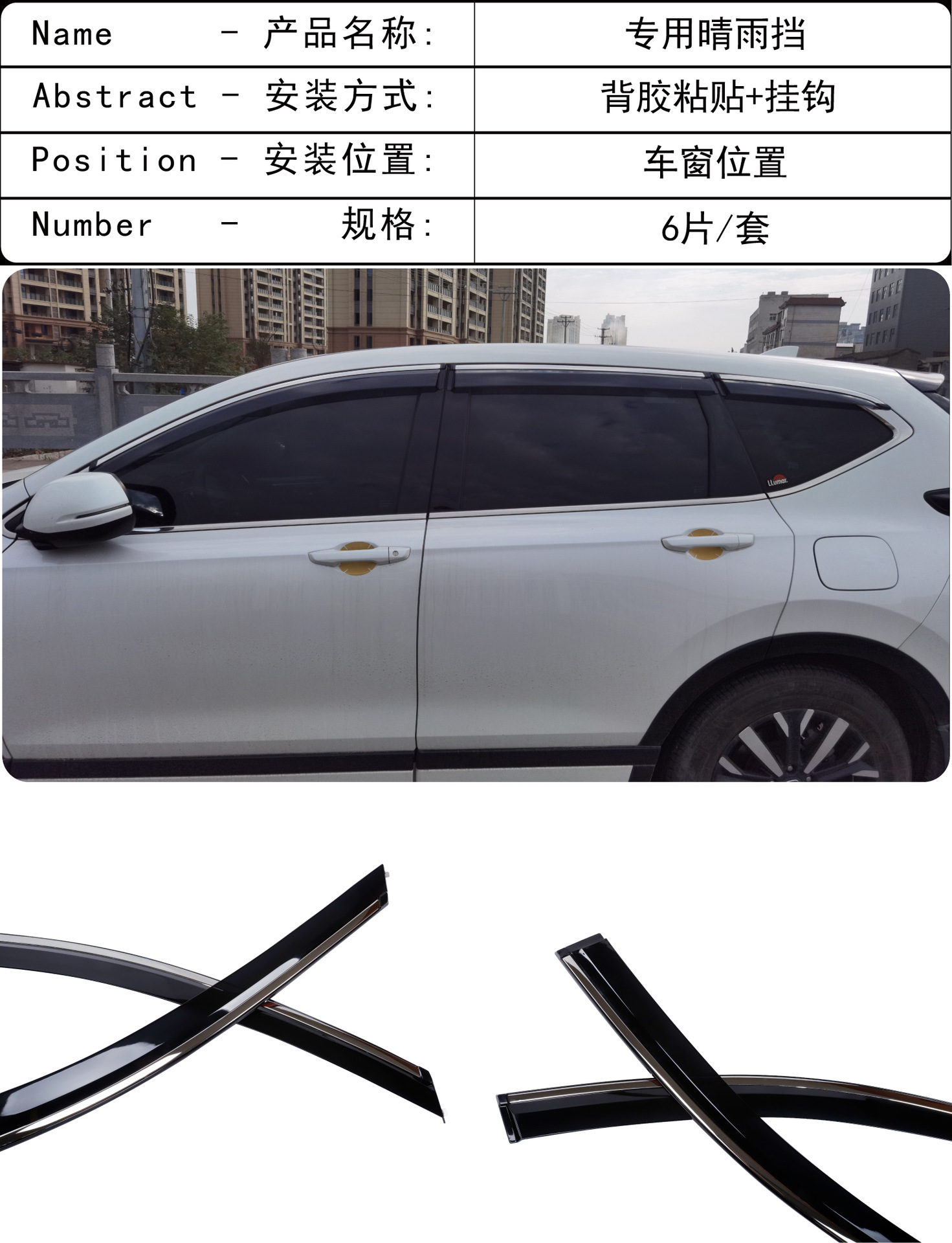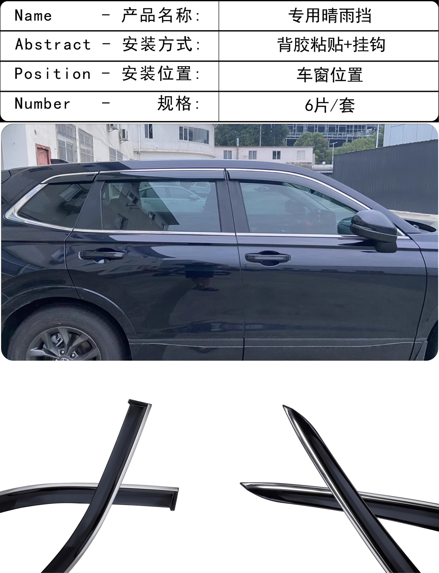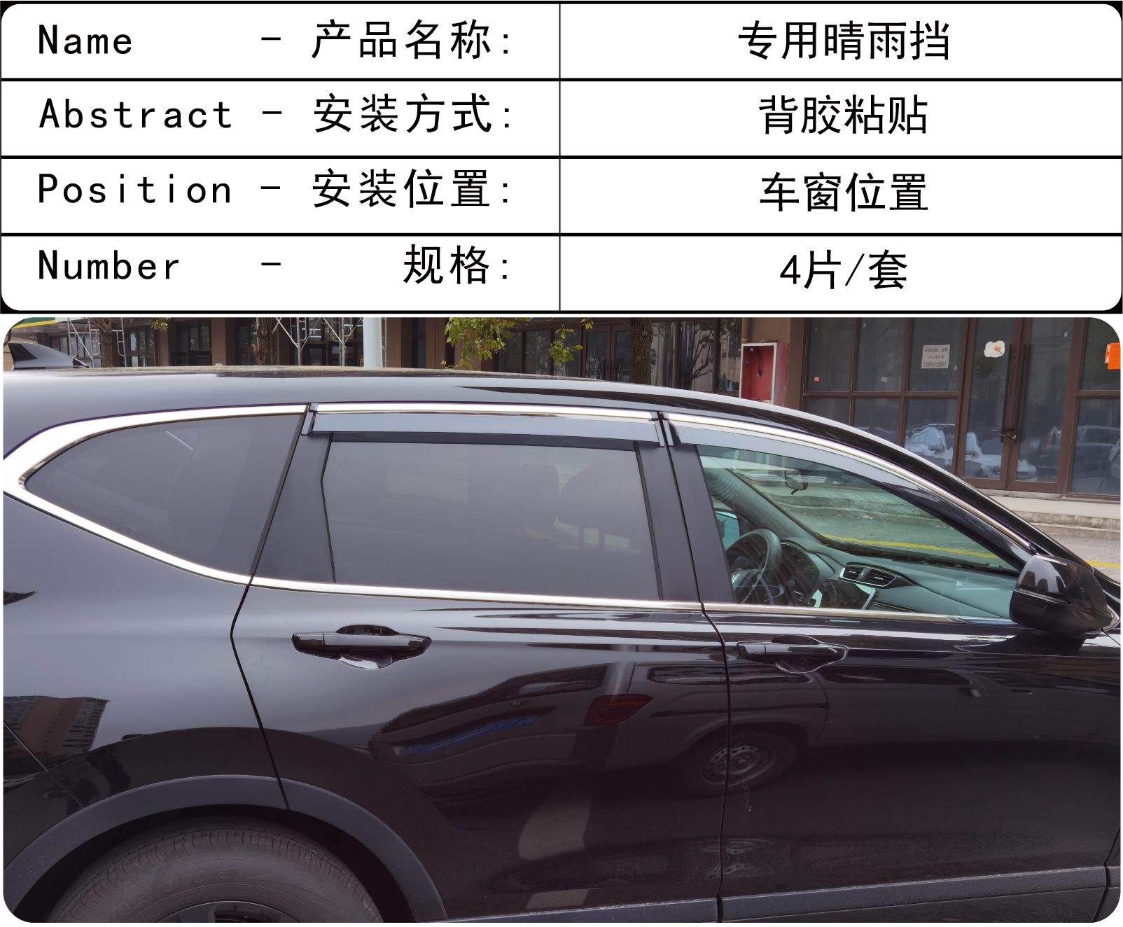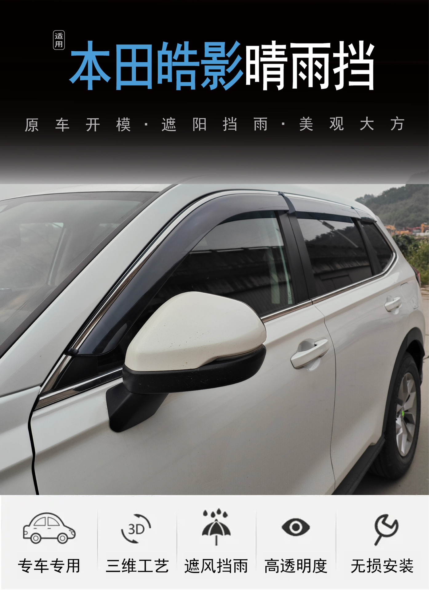 국경 적용 가능한 2020-2023 Honda Haoying BREEZE 창 커버 비 방지 검은 차 비 방패