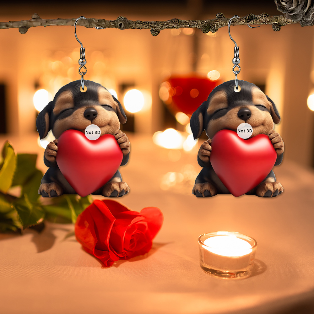 국경 간 사랑 강아지 발렌타인 데이 아크릴 귀걸이 여성 보석 장식 2D 플랫 펜던트 펜던트 장식스토어 가기