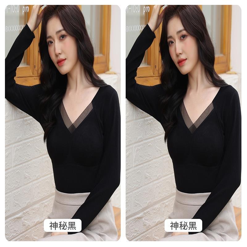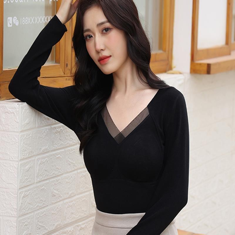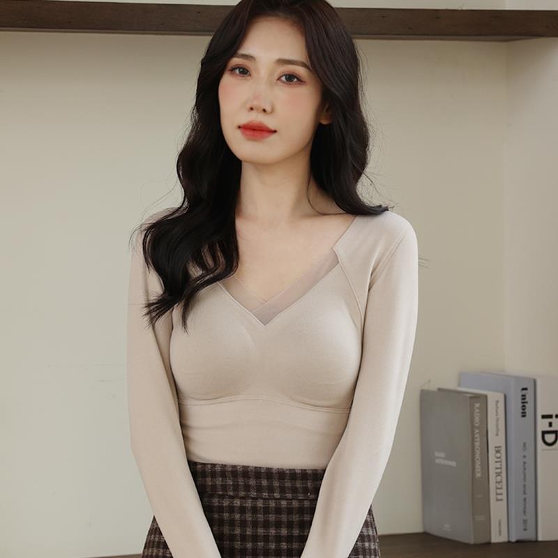 그래 핀 따뜻한 기모 열 저장 부풀지 않은 가을과 겨울 착용 잠금 온도 무료 착용 빠른 따뜻한 기모 여성용 긴 소매스토어 가기
