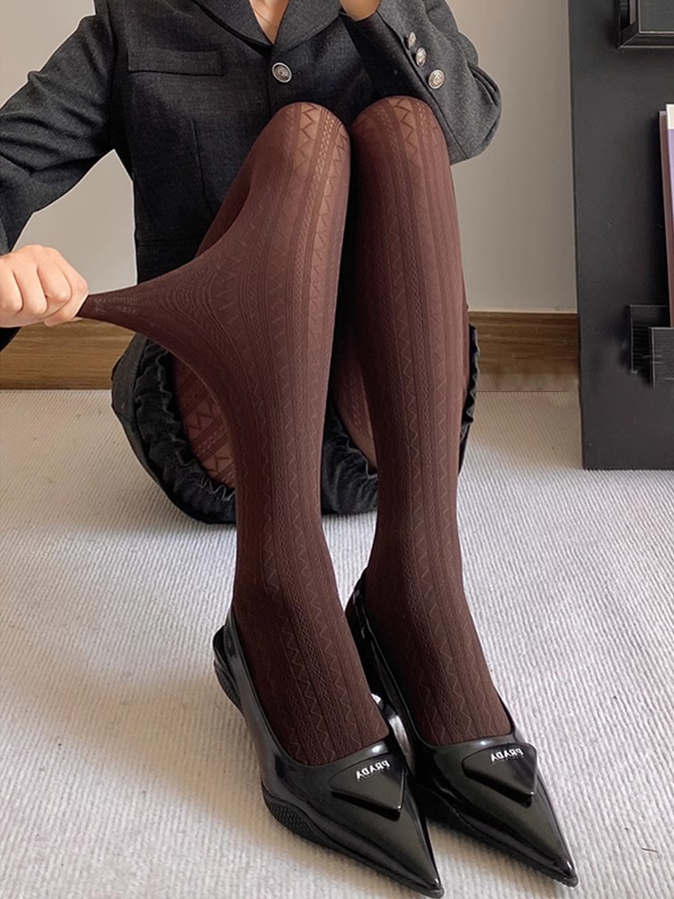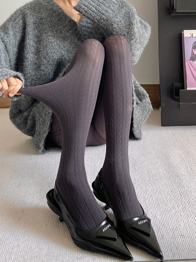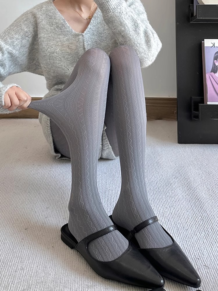 그레이 벨벳 레깅스, 신축성 있는 레트로 웨이브 팬티스타킹, 봄, 가을 스레드 브라운 팬티스타킹, 심플하고 다재다능함