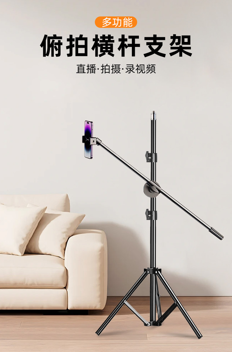 • [오버헤드 촬영 크로스바 브래킷] 61.5cm 금속 폴 + 금속 헤드 + 일체형 클립