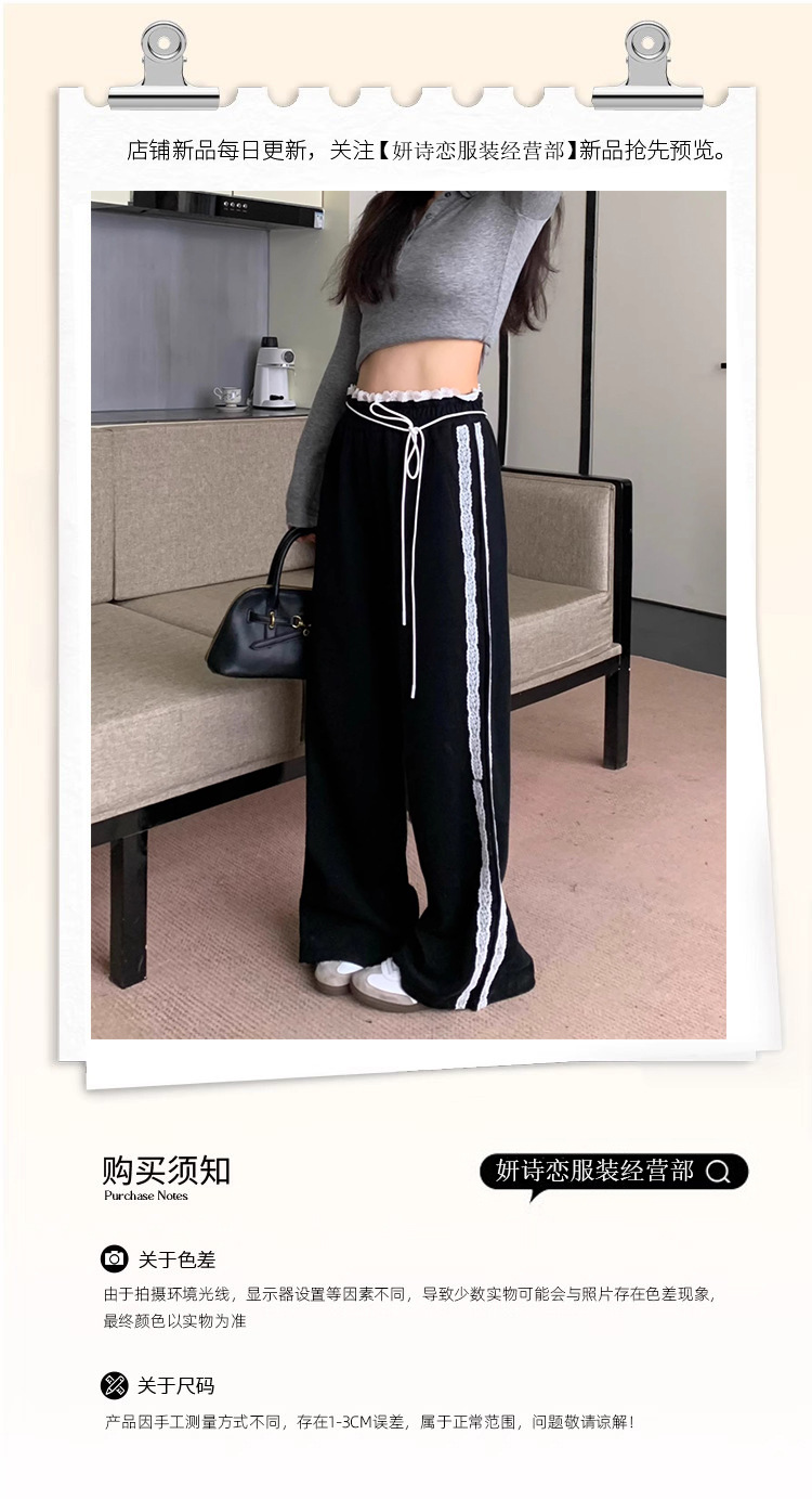 한국식 디자인 레이스 엣지 캐주얼 바지 여성 가을과 겨울 하이 웨이스트 헐렁한 스포츠 바지 드레이프 와이드 레그 팬츠 트렌디 한 바지스토어 가기