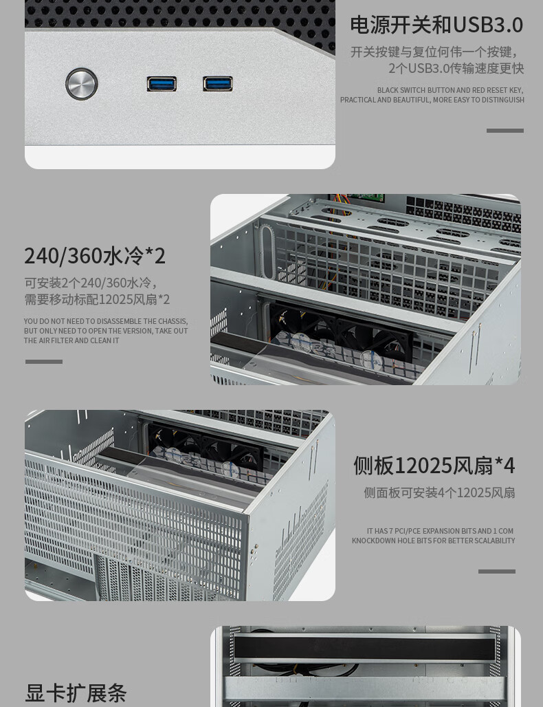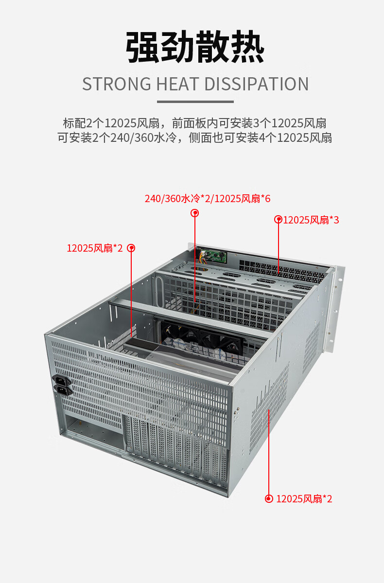 6u 산업 제어 섀시 4090 그래픽 카드 12 슬롯 멀티 gpu 듀얼 atx 전원 공급 장치 360 수냉식 e-atx 마더 보드 ai 서버