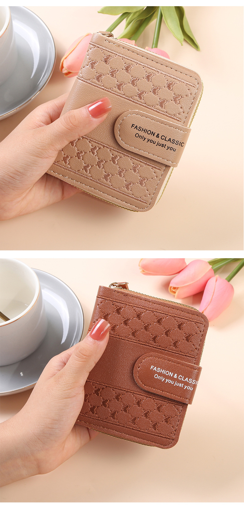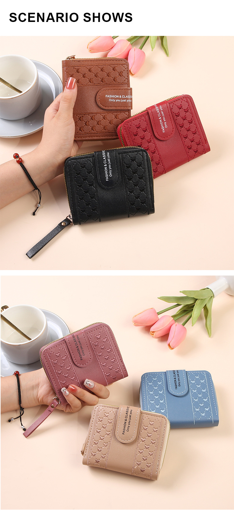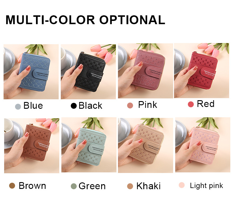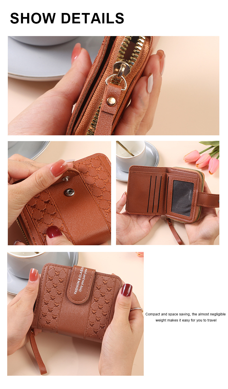 [소스팩토리] 신상품 여성용 지갑 짧은 지퍼 대용량 동전 지갑 다용도 클러치 백 카드 홀더
