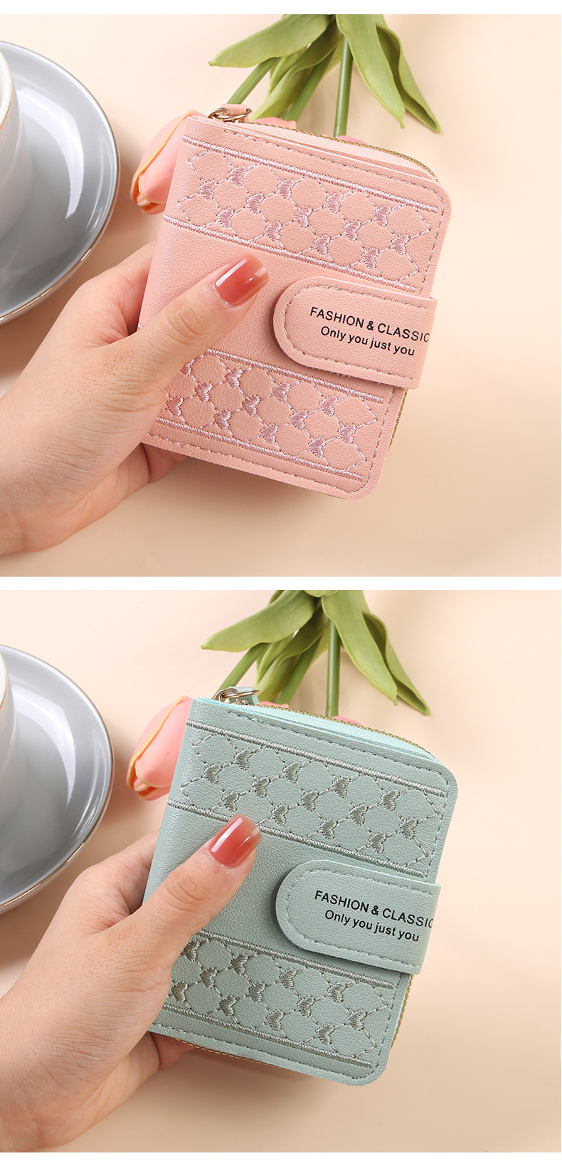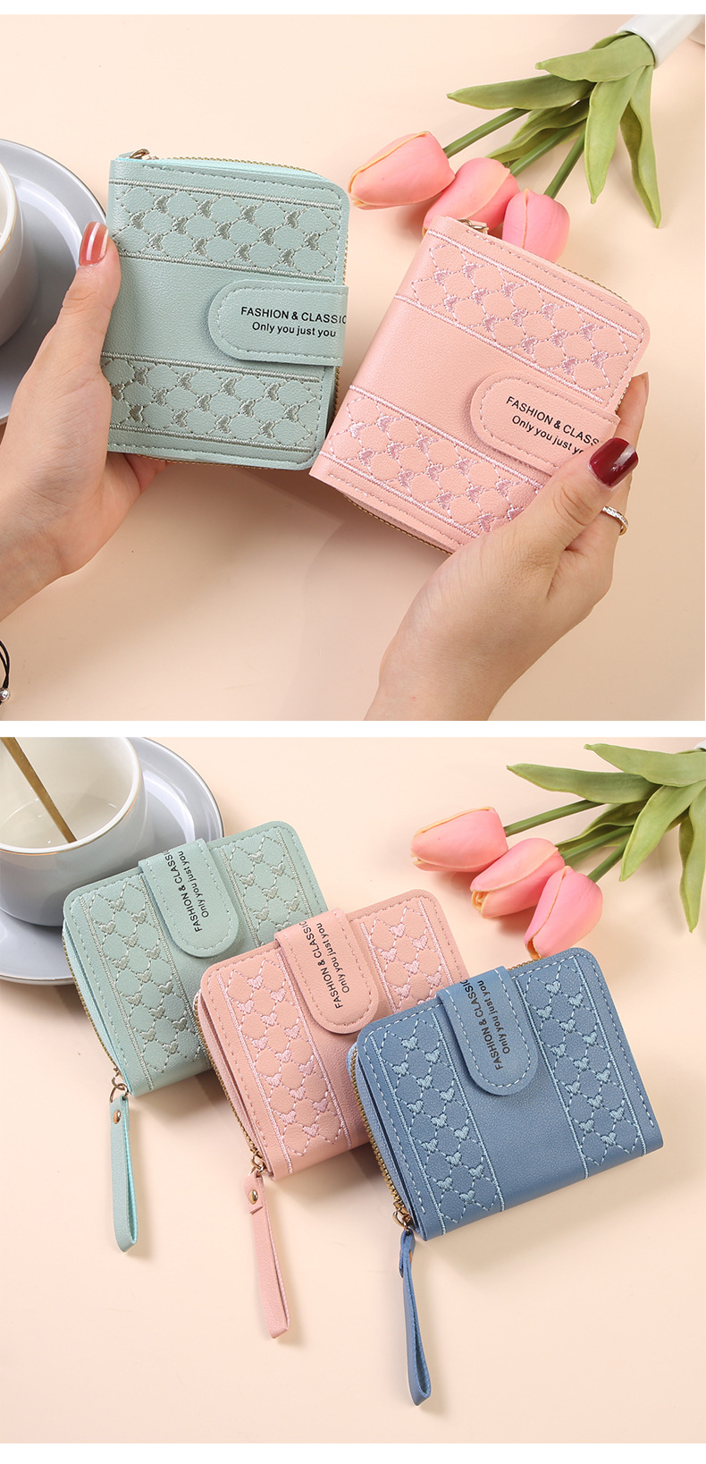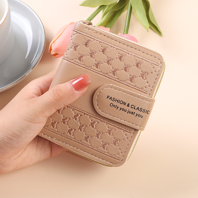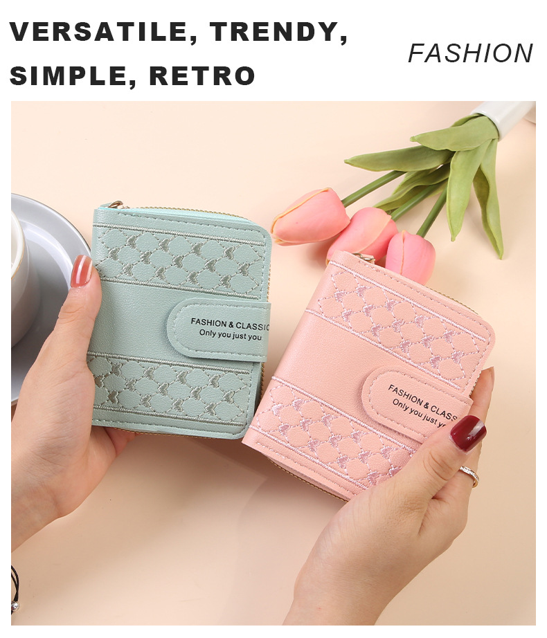 [소스팩토리] 신상품 여성용 지갑 짧은 지퍼 대용량 동전 지갑 다용도 클러치 백 카드 홀더